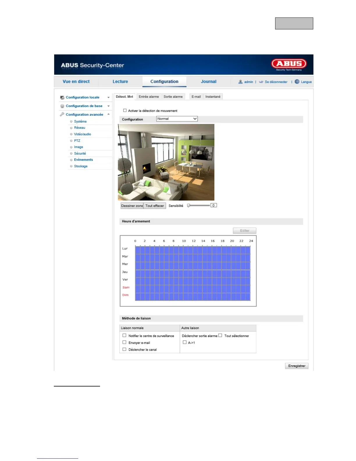 Activez la détection de mouvement en cochant la case « Activer la détection de mouvement ».