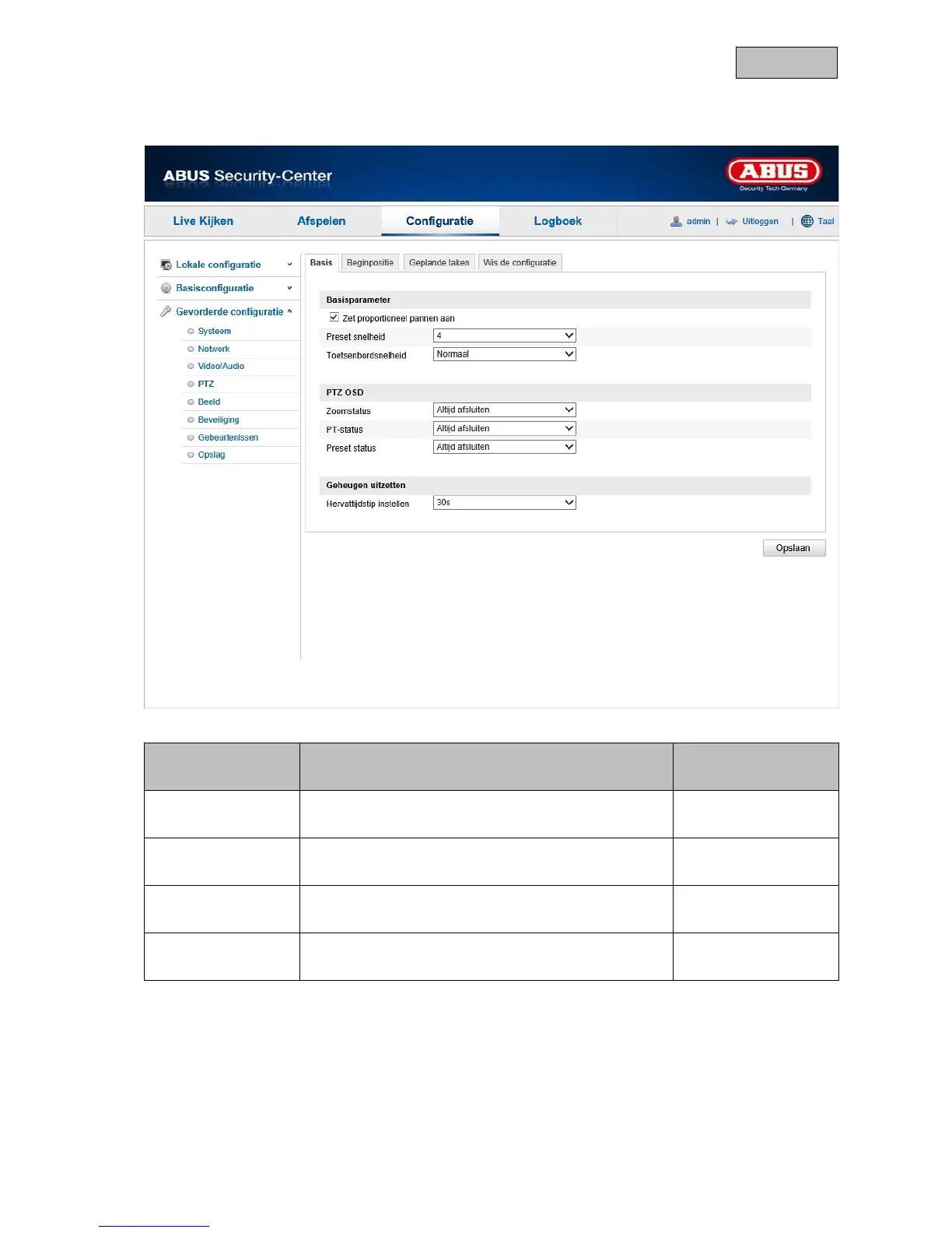 Instellingen voor de PTZ-basisprincipes Geavanceerde