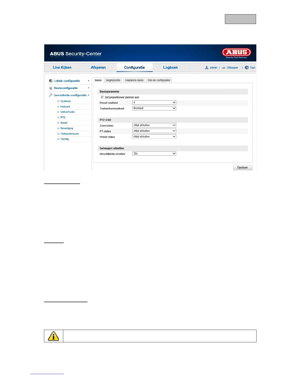 Na opnieuw starten kan de camera vanuit uw laatste PTZ-status of de laatst uitgevoerde actie verder