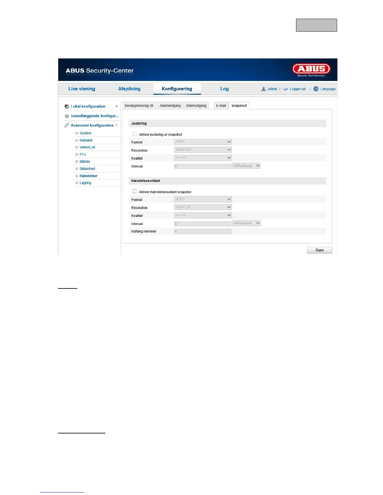 Aktivér denne funktion for at gemme hændelsesstyrede billeder.