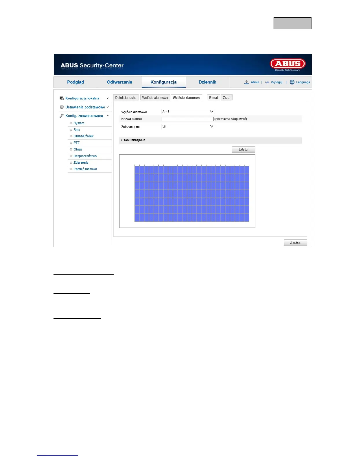 W tym miejscu istnieje możliwość skonfigurowania wyjścia alarmowego.
