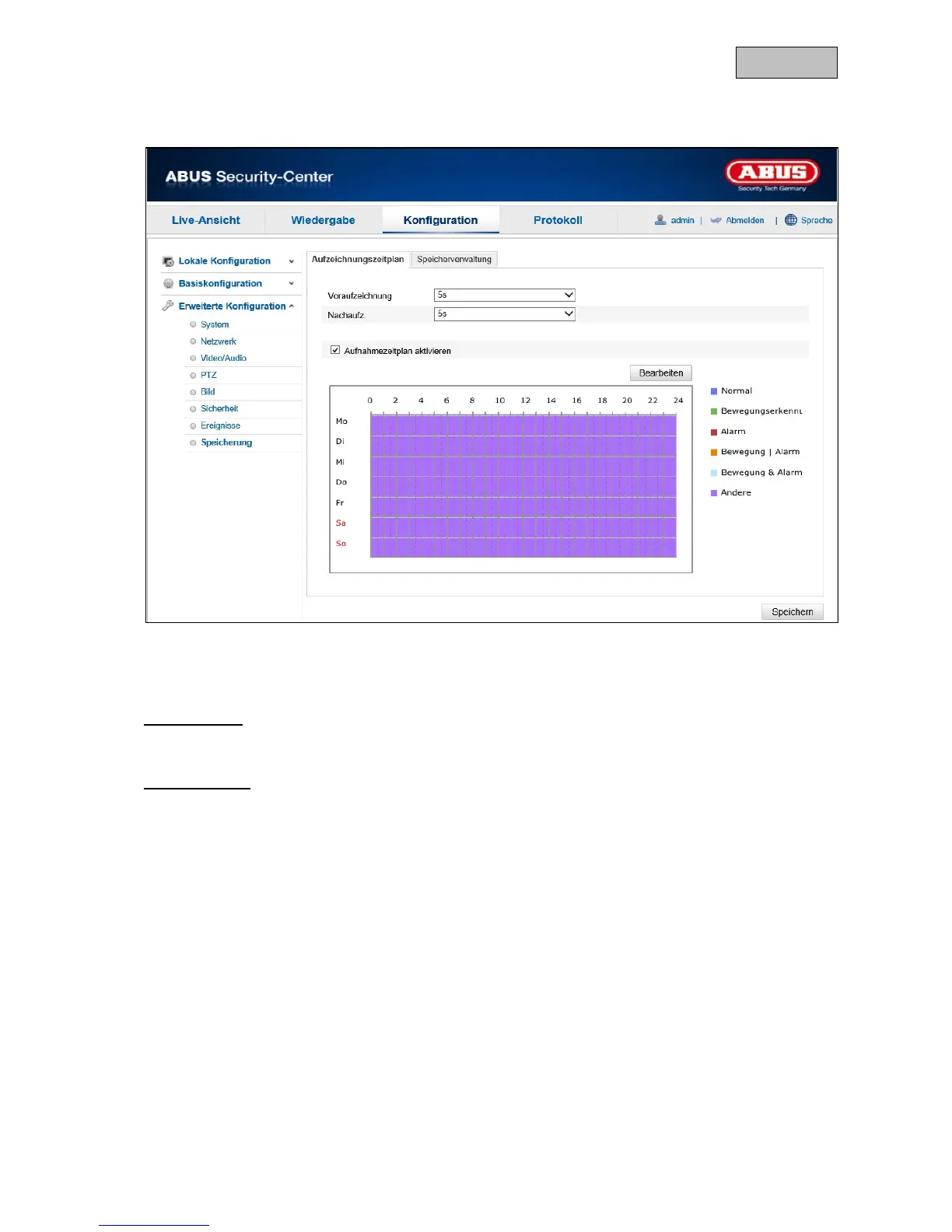 Aquí puede configurar la grabación con activación horaria y con activación por evento para guardarlas