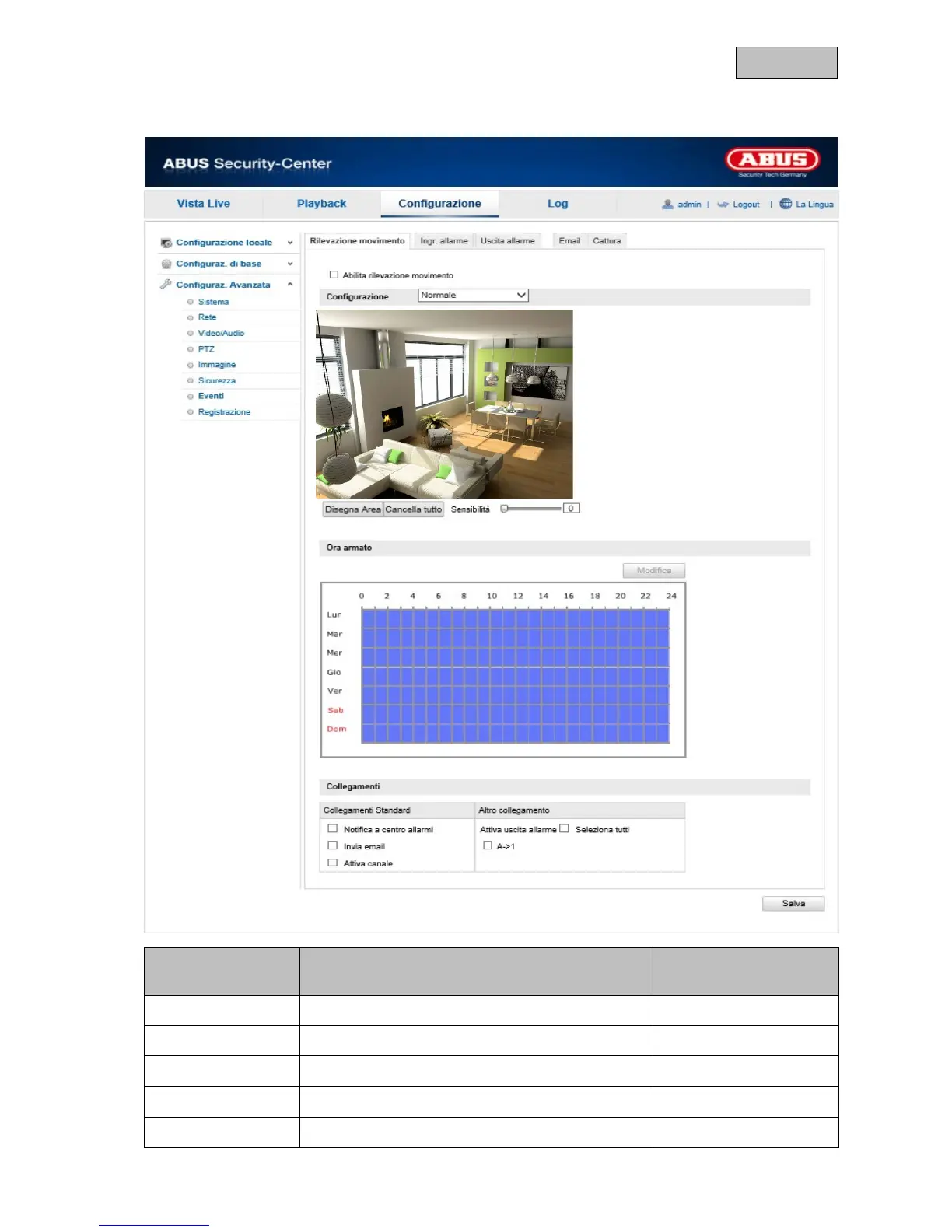 Impostazione del rilevamento del movimento Configurazione avanzata