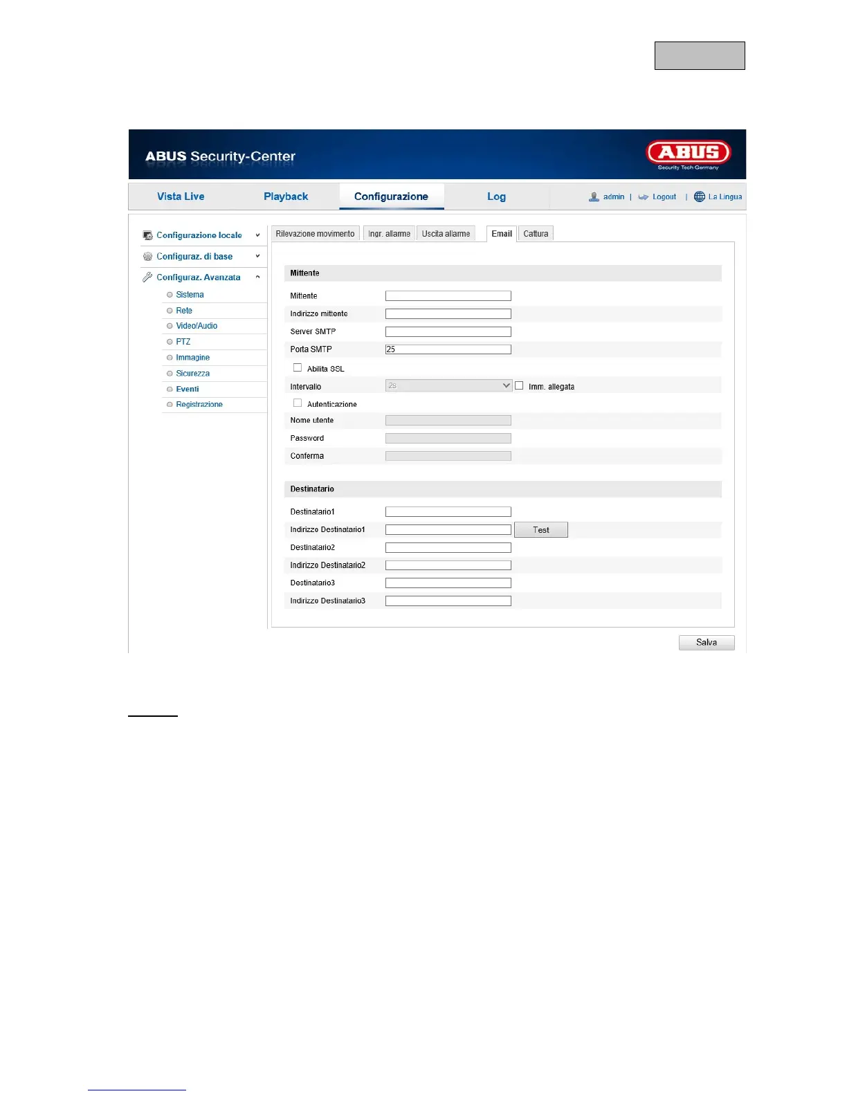 Qui è possibile eseguire le impostazioni relative all’invio di e-mail.
