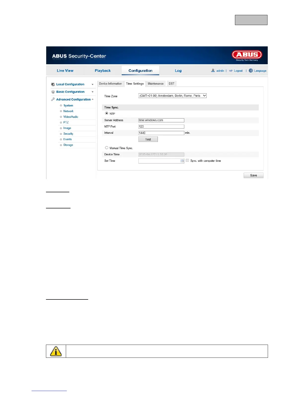 Using the Network Time Protocol (NTP), it is possible to synchronise the time of the camera with a