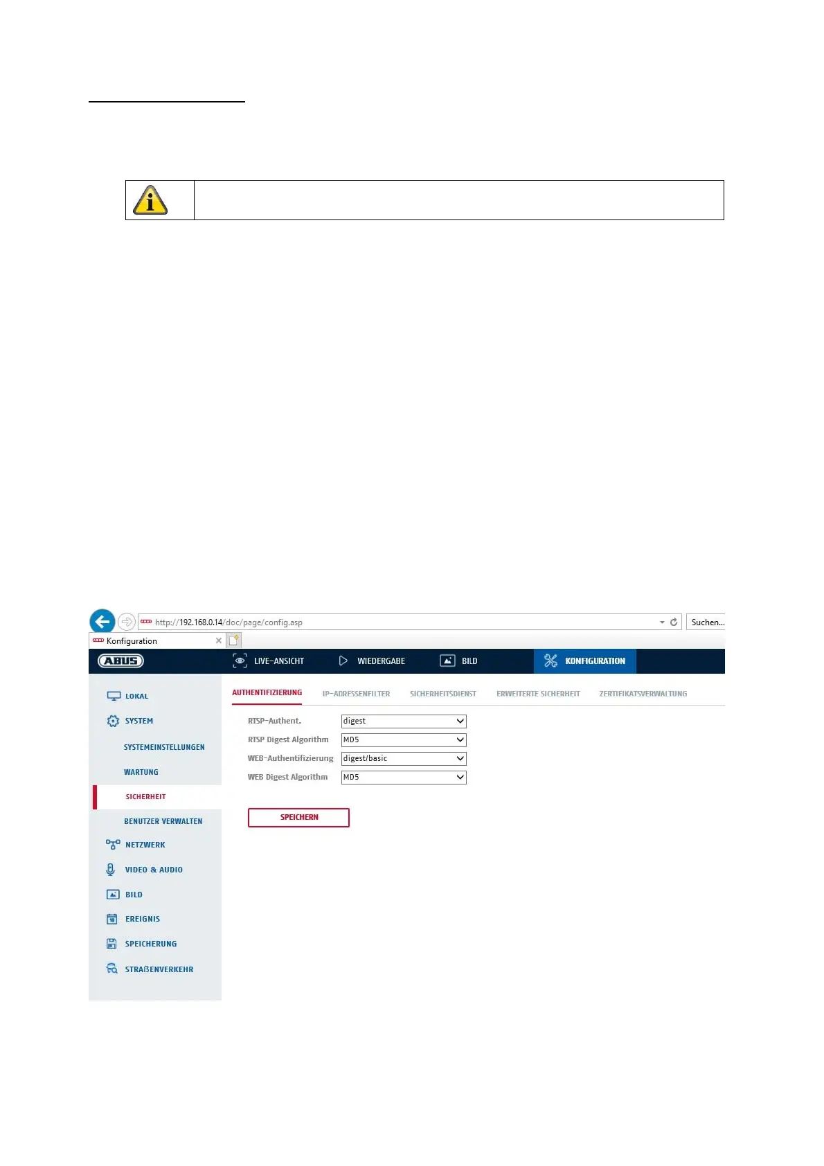Seite der Kamera sowie den Abruf des Videostroms über das RTSP Protokoll vorgenommen werden.
