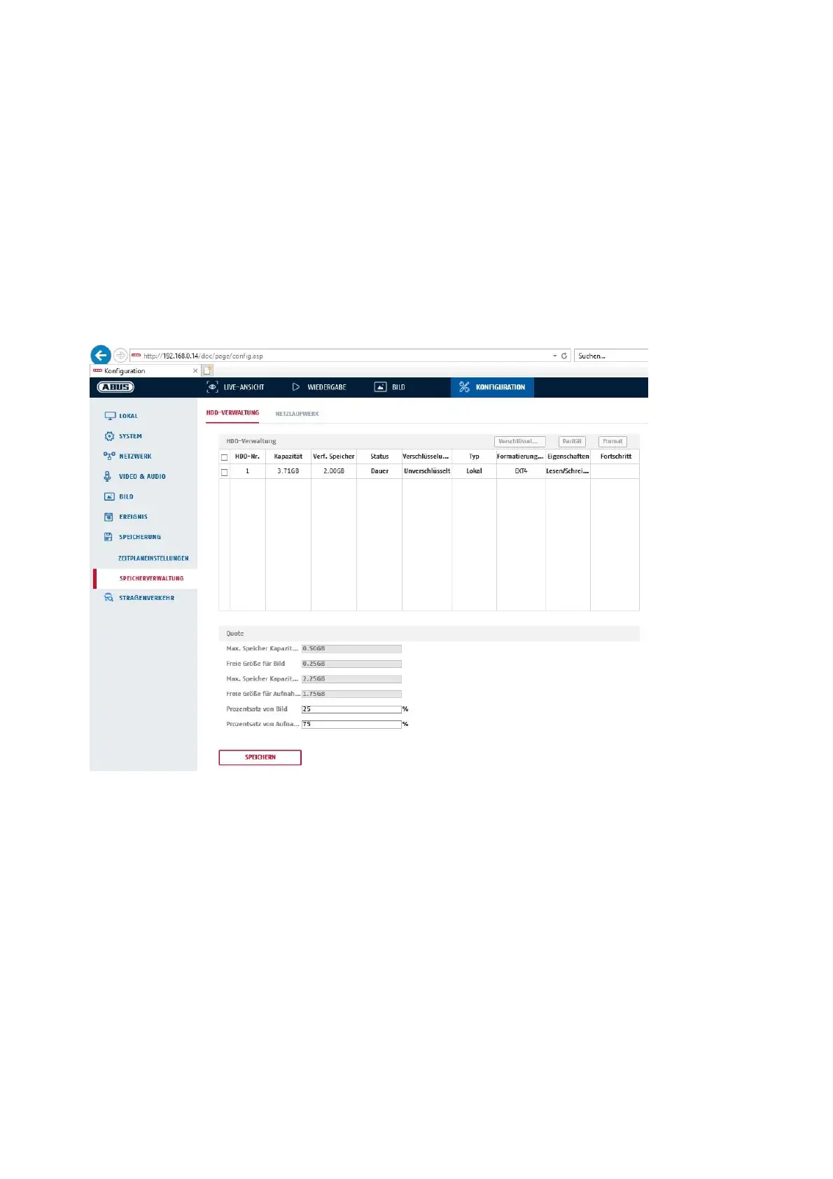 på lagringsmediet krypteres. Der kan også foretages en procentvis fordeling af lagerpladsen for videodata og