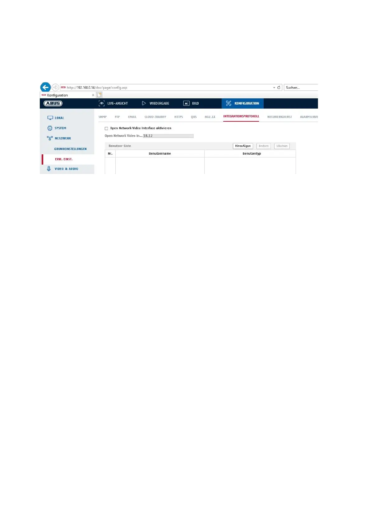 Dans ce menu, le protocole ONVIF (Open Network Video Interface) peut être activé et configuré. Pour cela, il