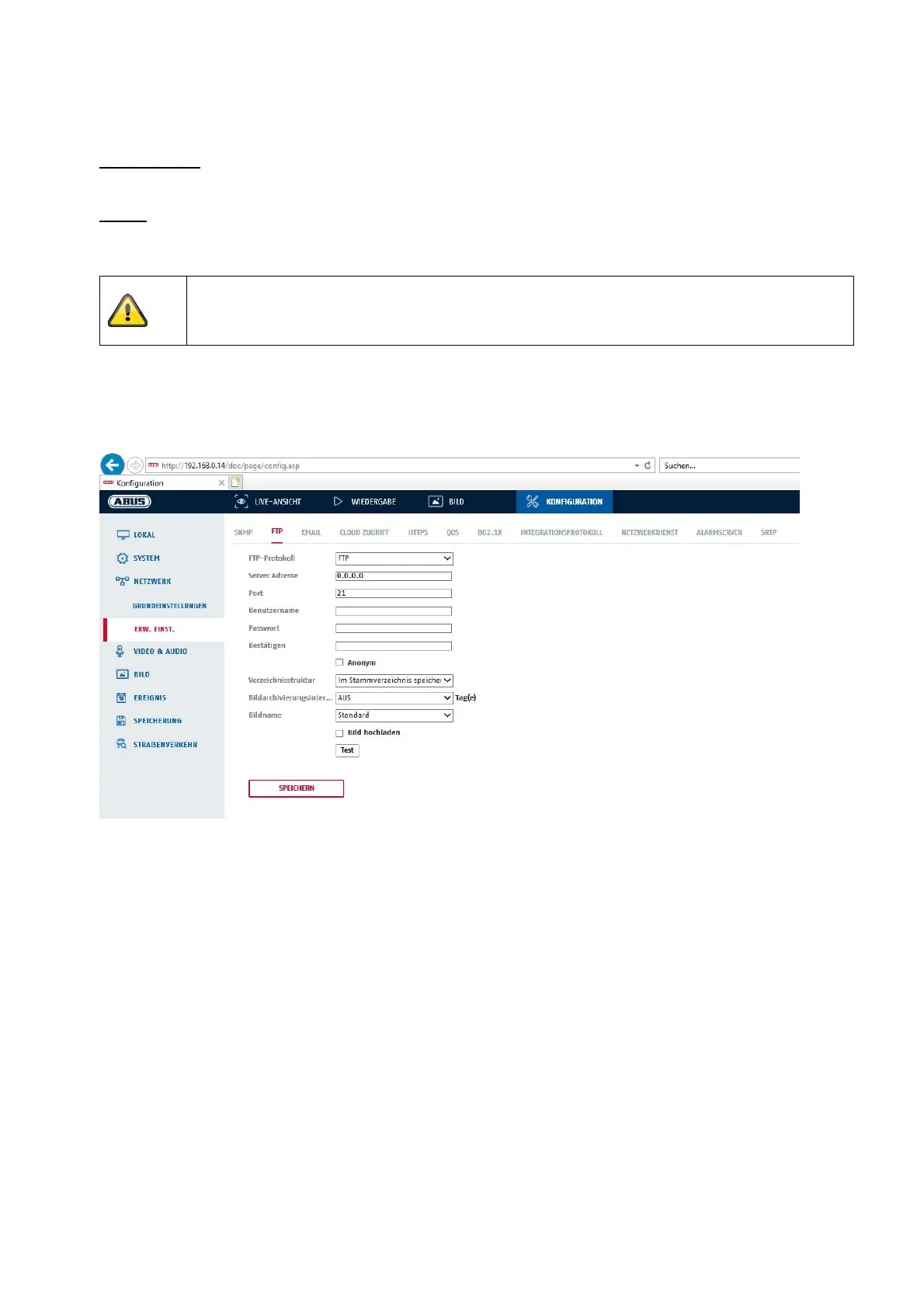 Om opgenomen video's of beelden op een FTP-server te uploaden, moeten volgende instellingen worden