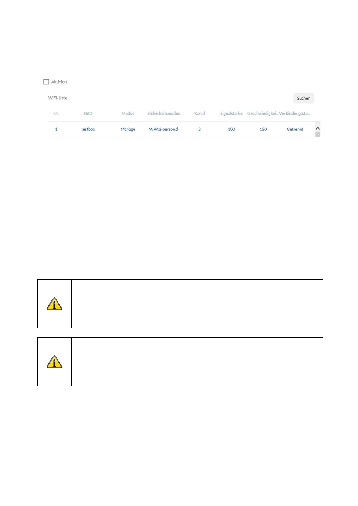 WiFi-lijst: Hier worden de beschikbare WiFi-netwerken weergegeven. Klik in een rij om een netwerk te