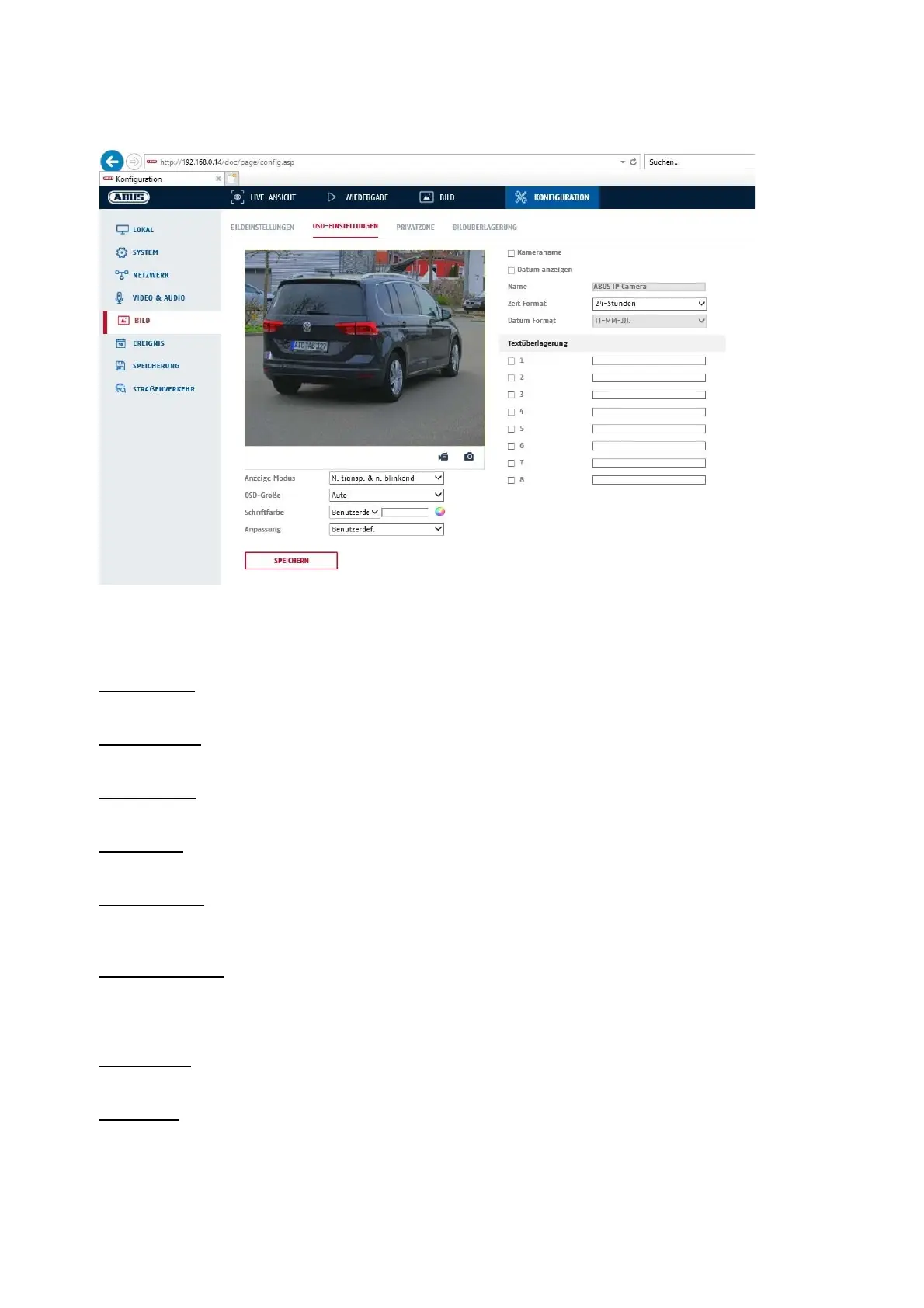 Bij dit menupunt kunt u selecteren welk datum- en tijdformaat in het live-beeld moet worden getoond.