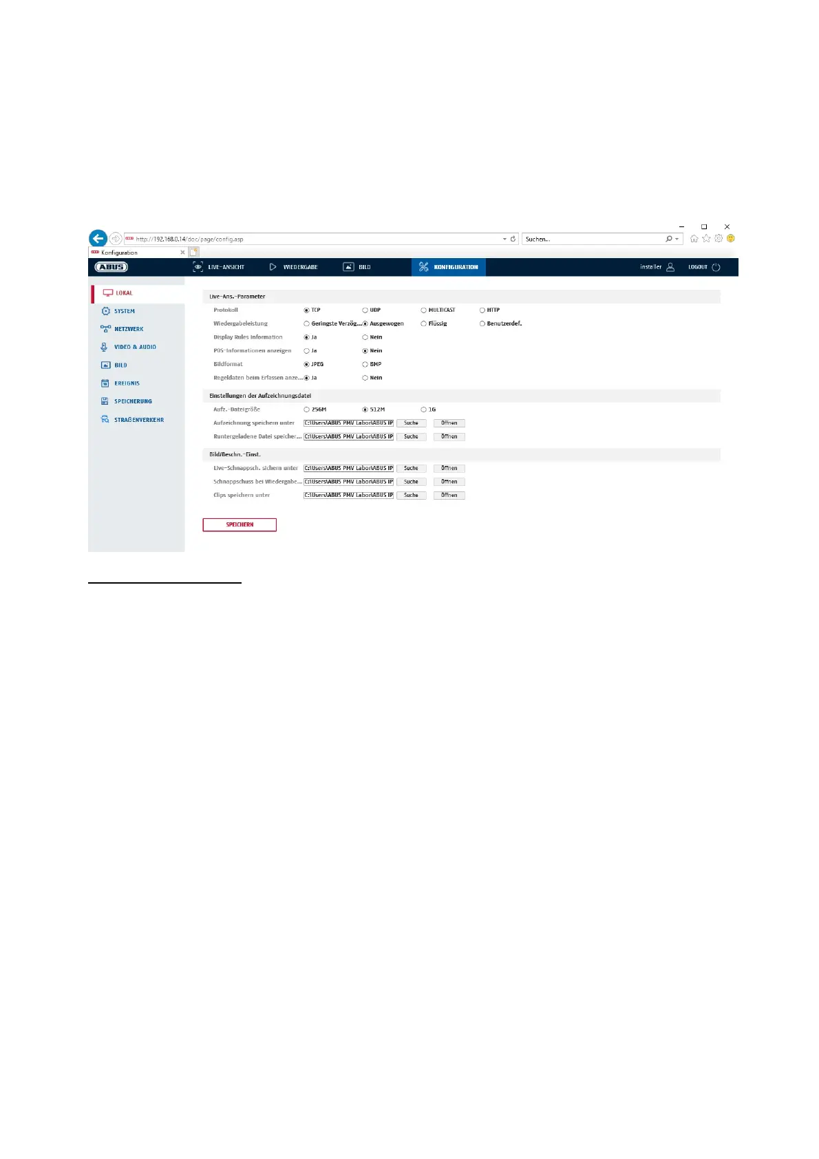 Unter dem Menüpunkt „Lokale Konfiguration“ können Sie Einstellungen für die Live-Ansicht, Dateipfade der