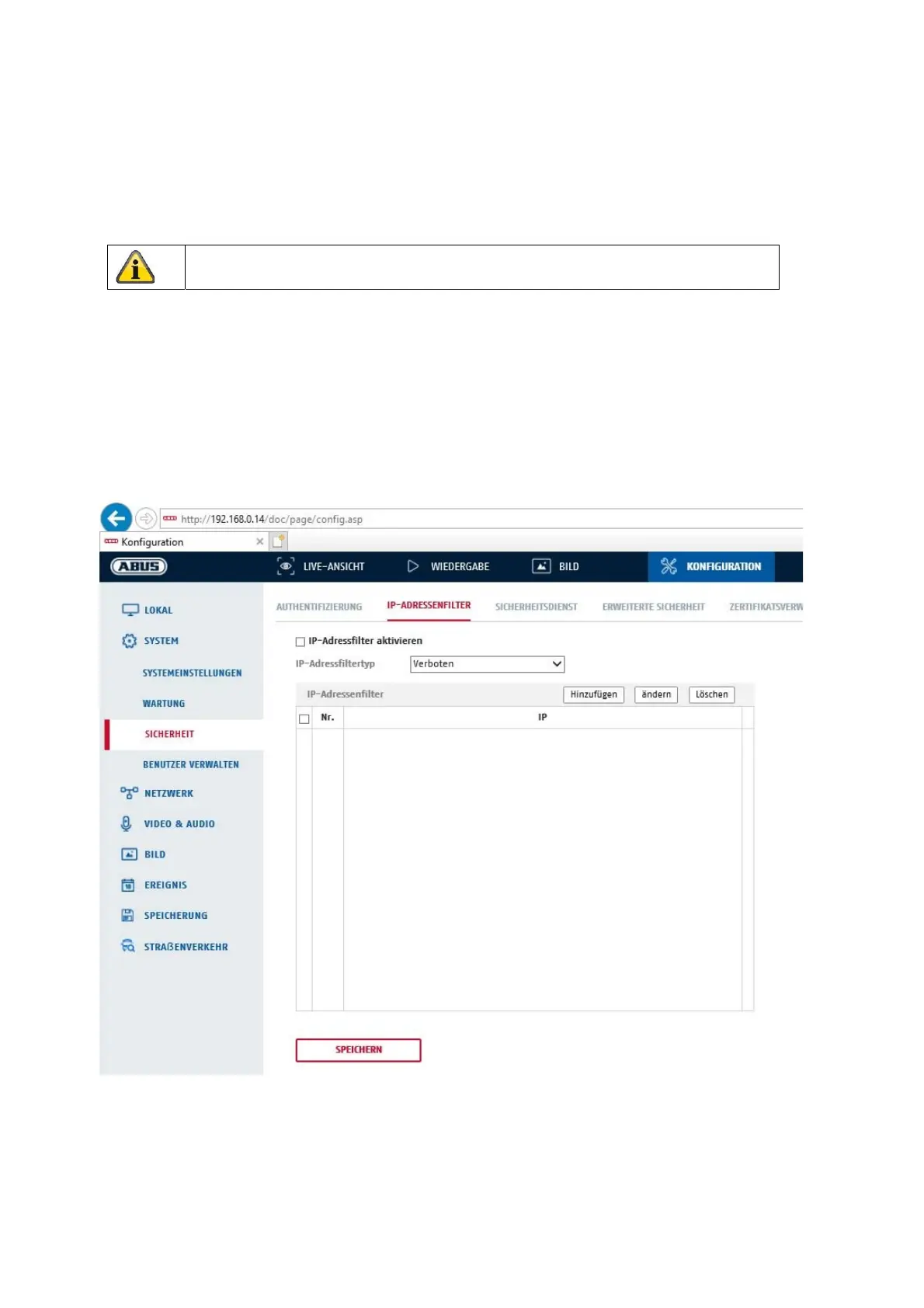 Tilladt: IP-adresserne, der er defineret nedenfor, accepteres til adgang til kameraet.