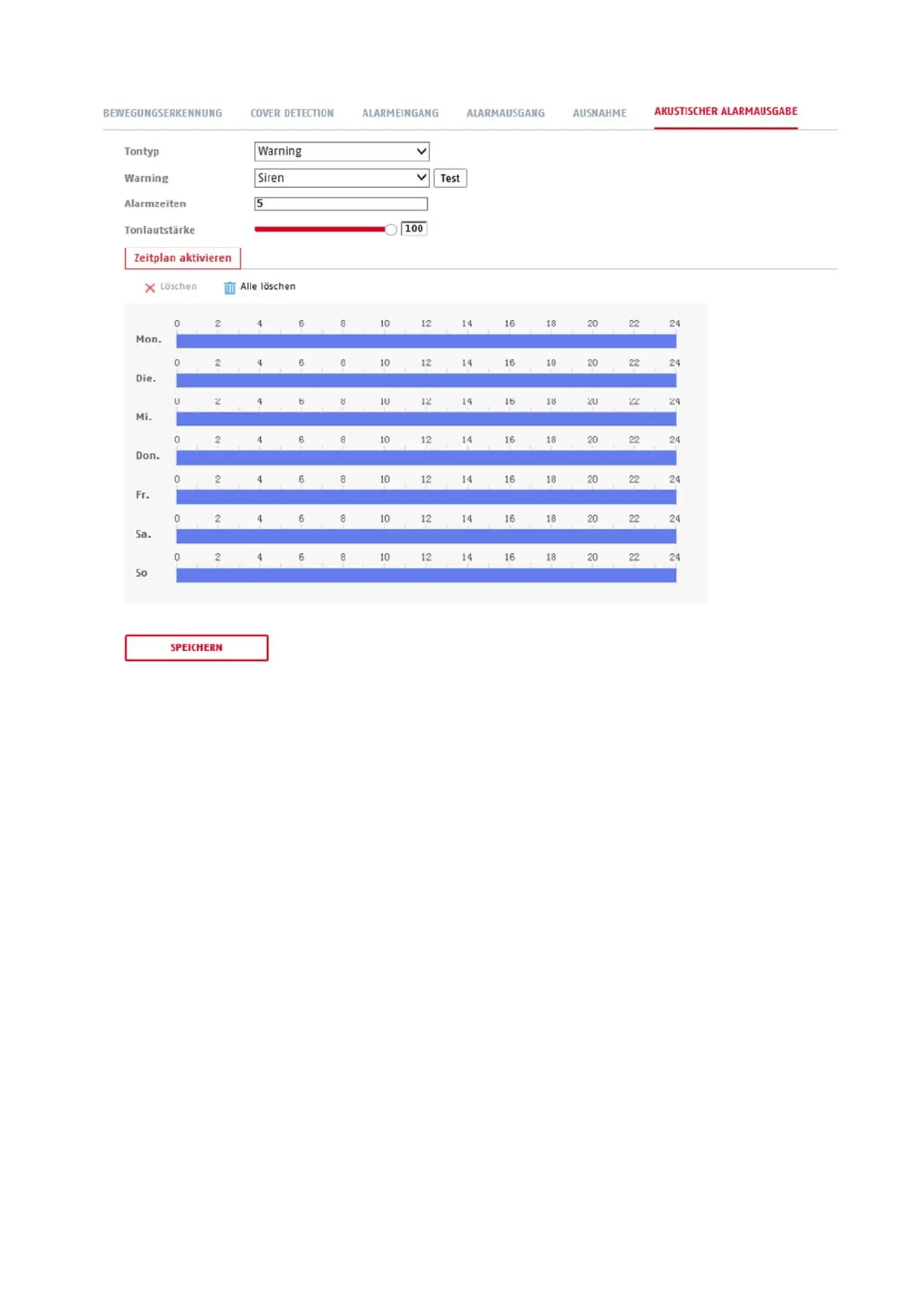 Tipo di suono: warning (segnale acustico, selezione), prompt (breve avviso acustico), audio definito