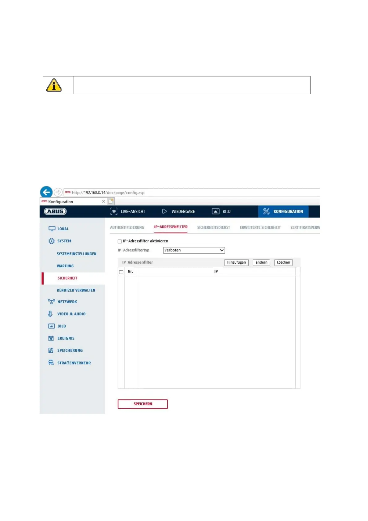 Allowed: The IP addresses detailed further below can be used to access the camera.
