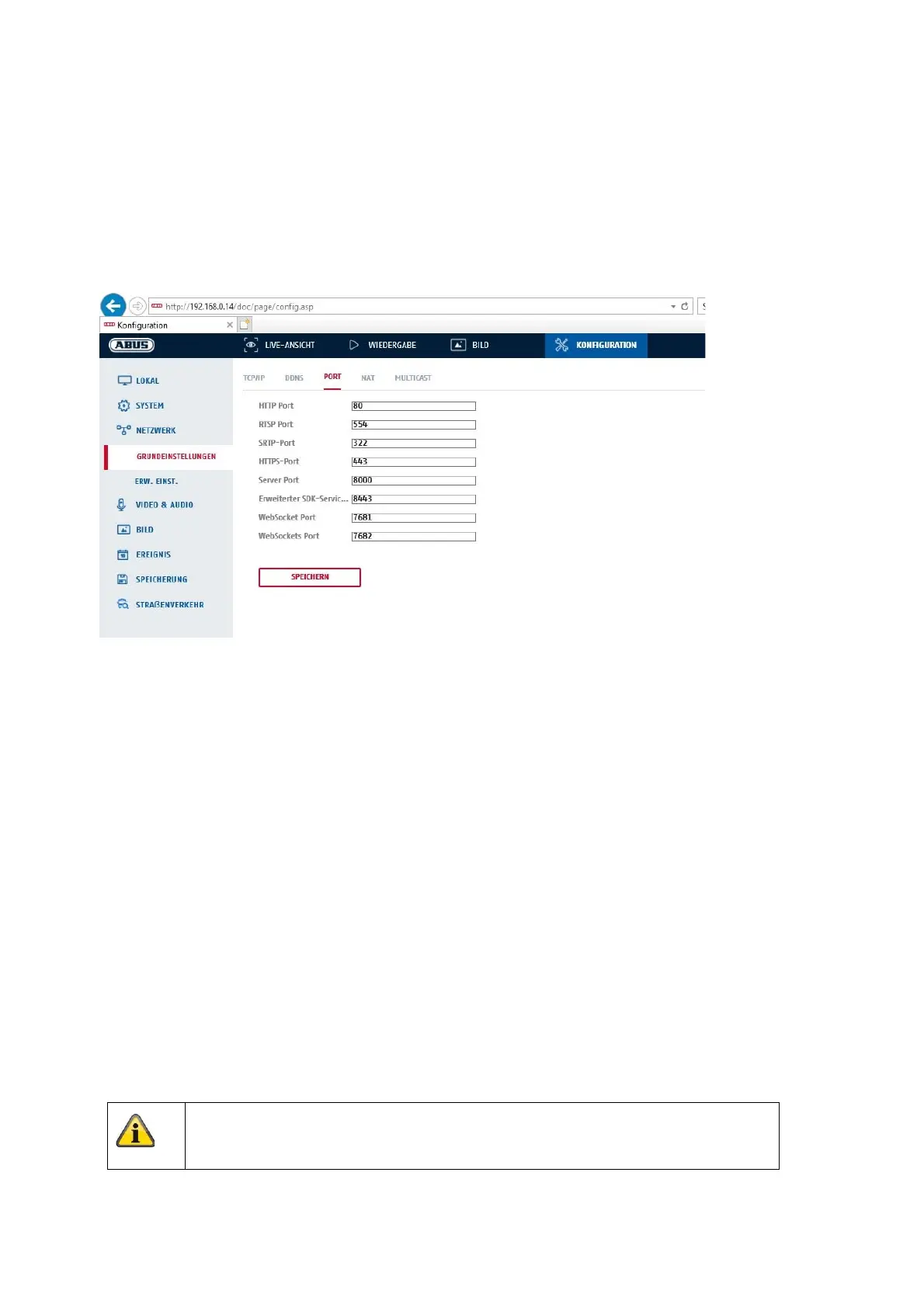 If you wish to enable external access to the camera, the following ports must be configured.