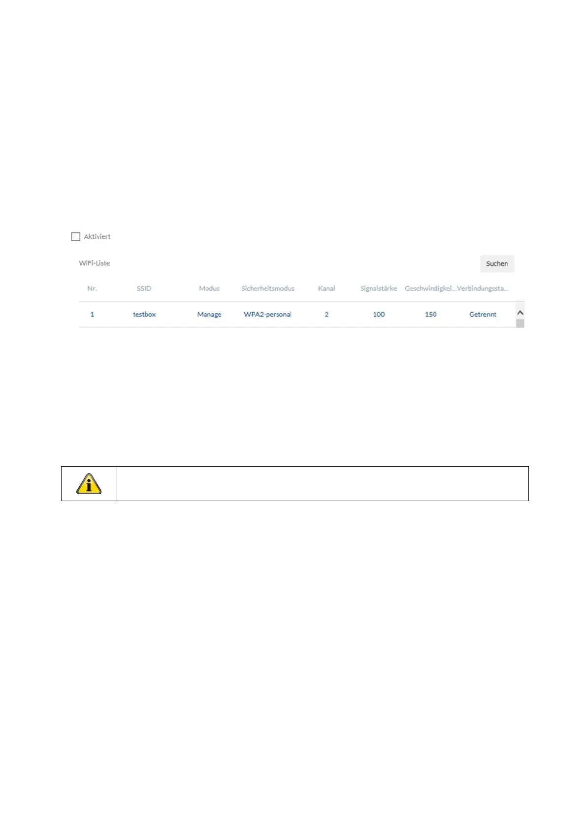 WiFi list: The available WiFi networks are displayed here. Click in a row to select a network.