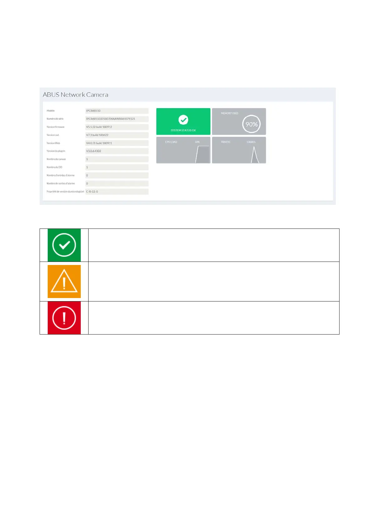 Dans la zone supérieure droite, l’état général du système est représenté par un symbole.