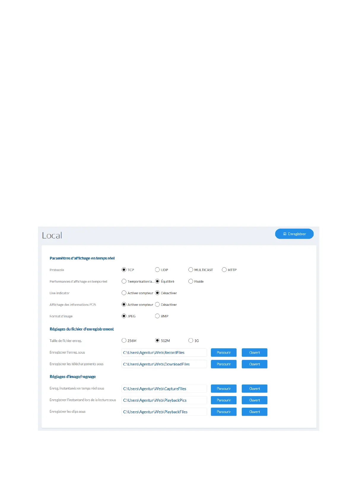 Sauvegarder enregistrements sous : Sélectionnez le chemin pour l’enregistrement vidéo.
