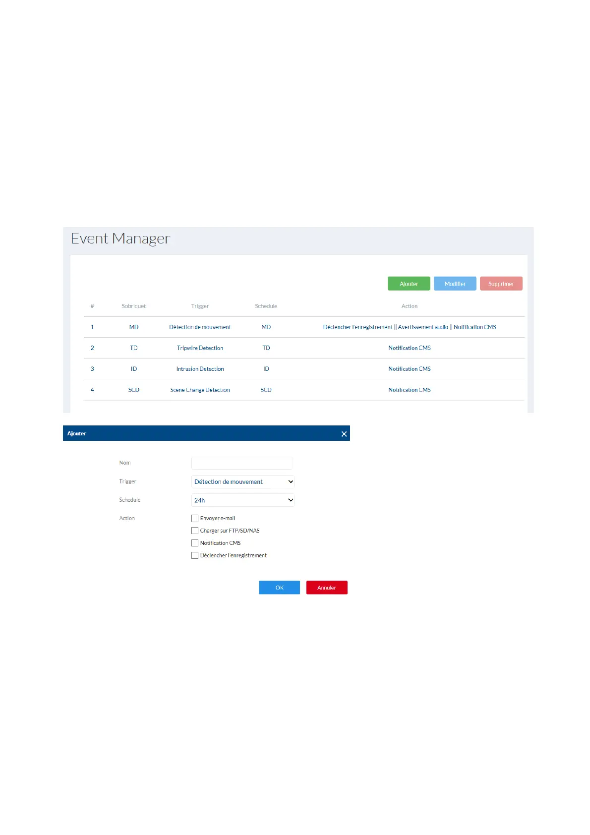 Action : Sur cette page, une ou plusieurs actions peuvent être définies pour