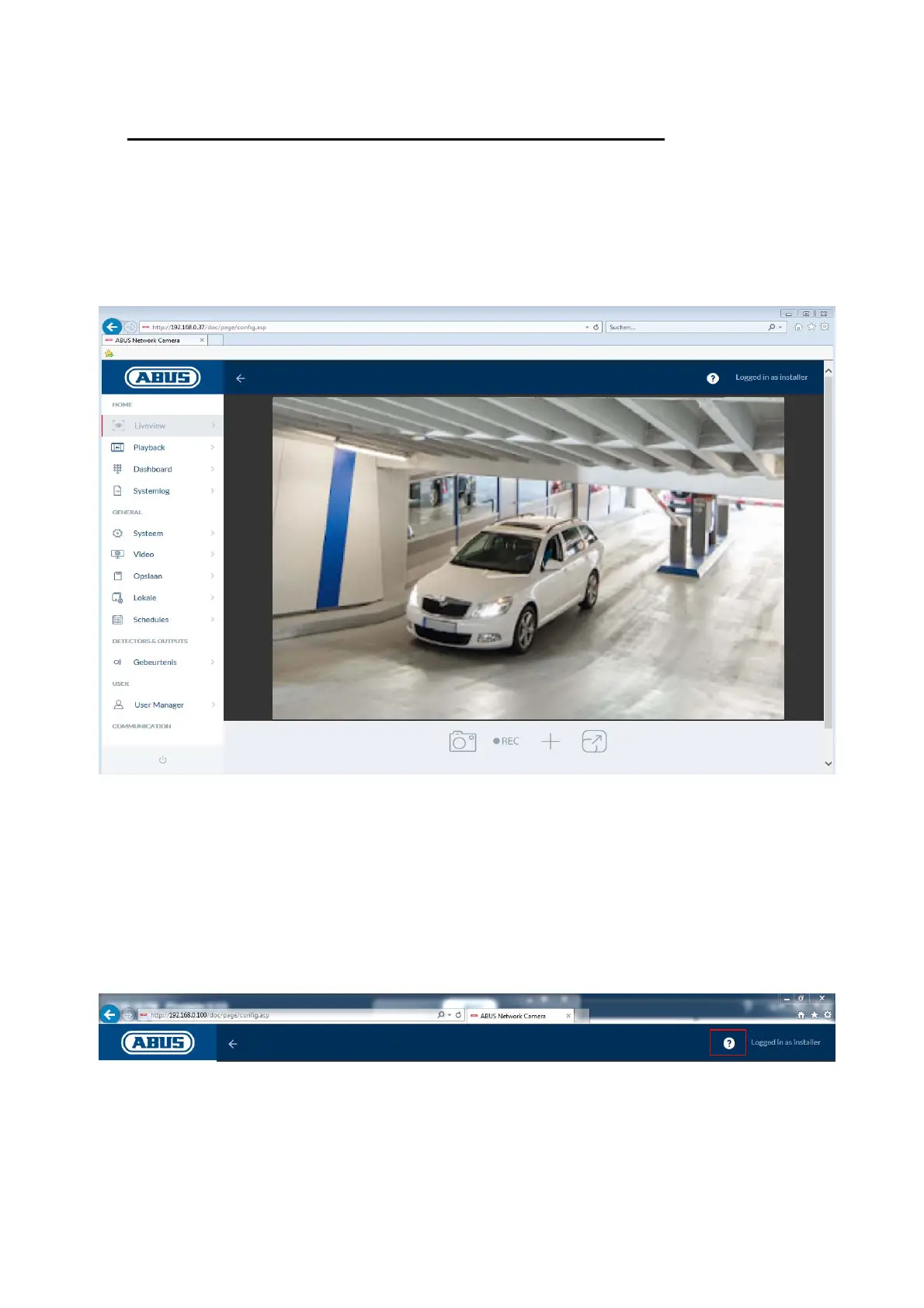7. Weergave en configuratiemenu gebruiker "installer"