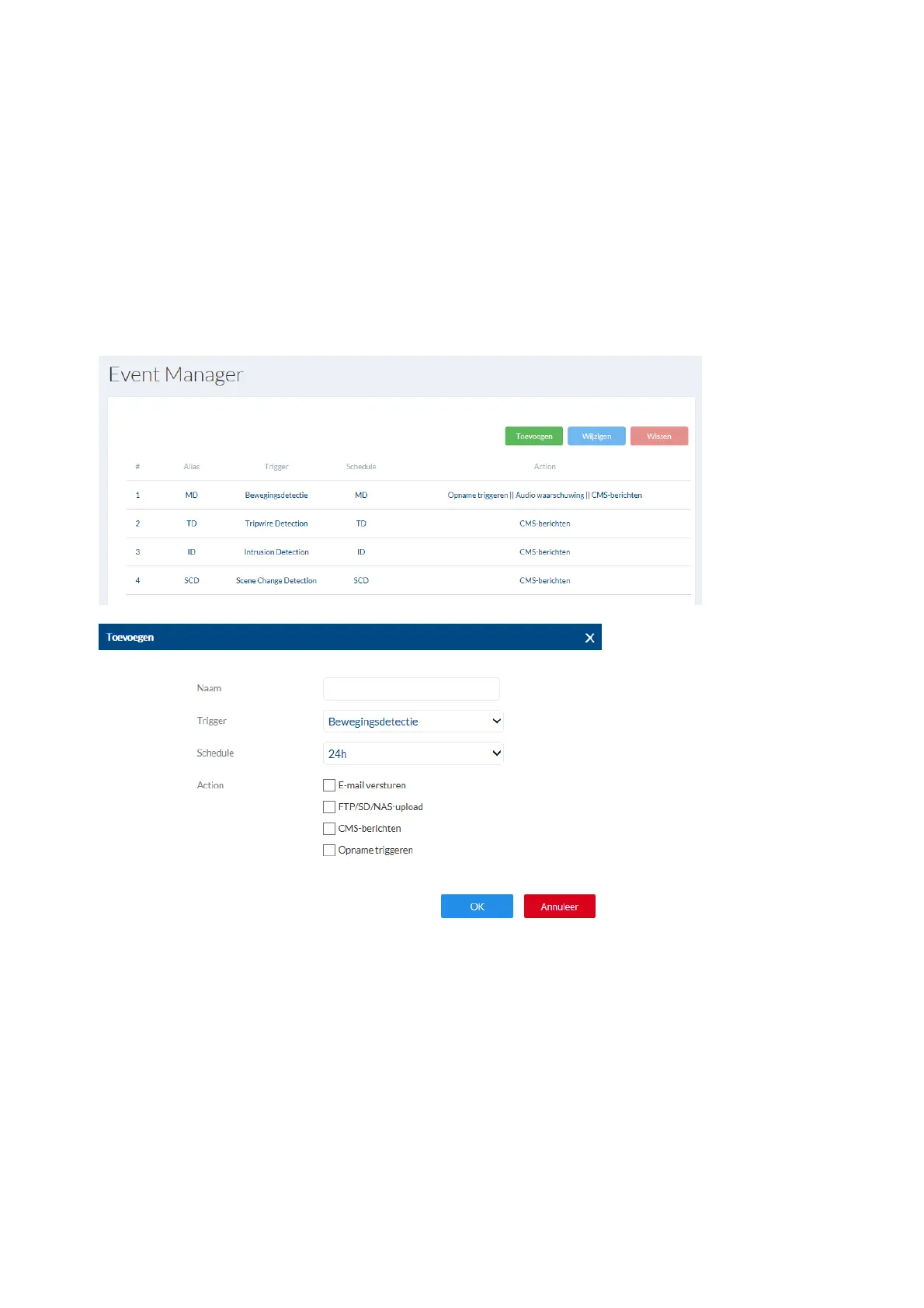 Trigger: Een alarmregel bestaat uit een trigger, een tijdschema voor
