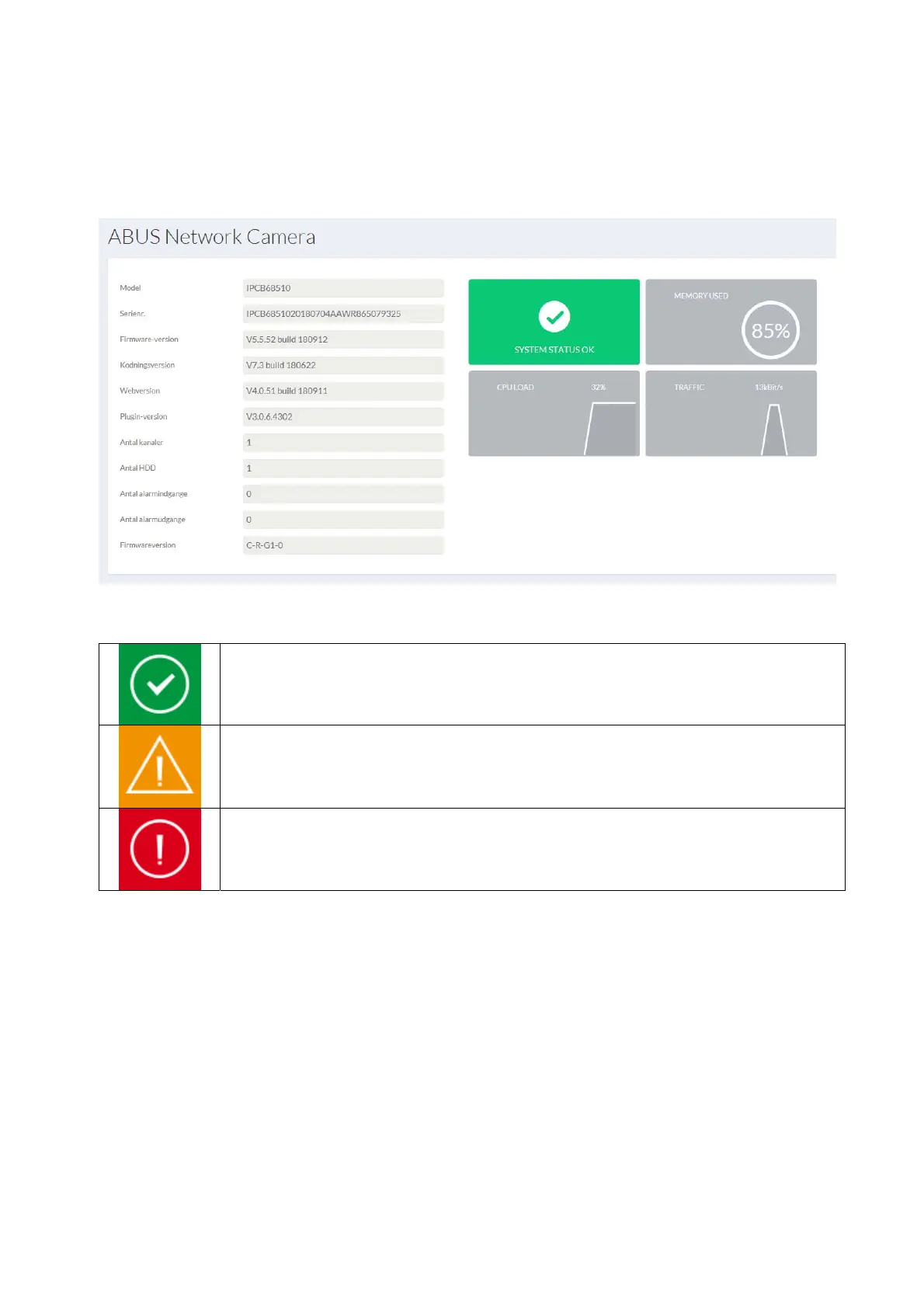 I det øverste højre område vises systemets generelle tilstand via et symbol.