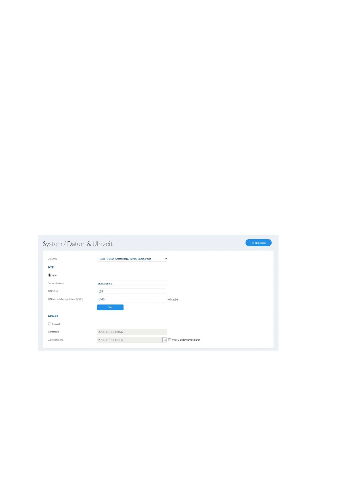 NTP: Setzen Sie den Auswahlhaken, um das Datum und die Uhrzeit der