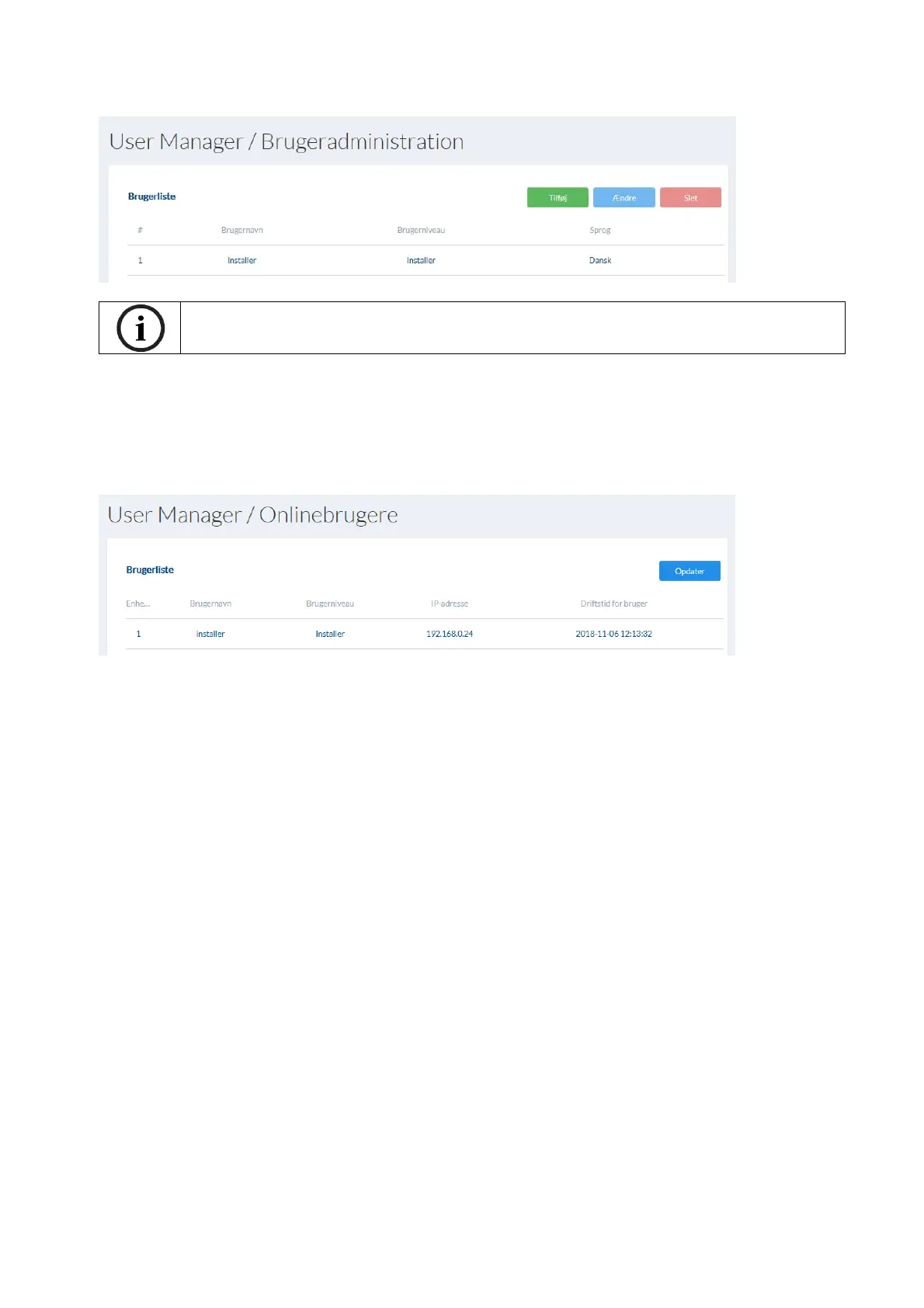 Visning af oplysninger om brugere, der aktuelt er logget ind.