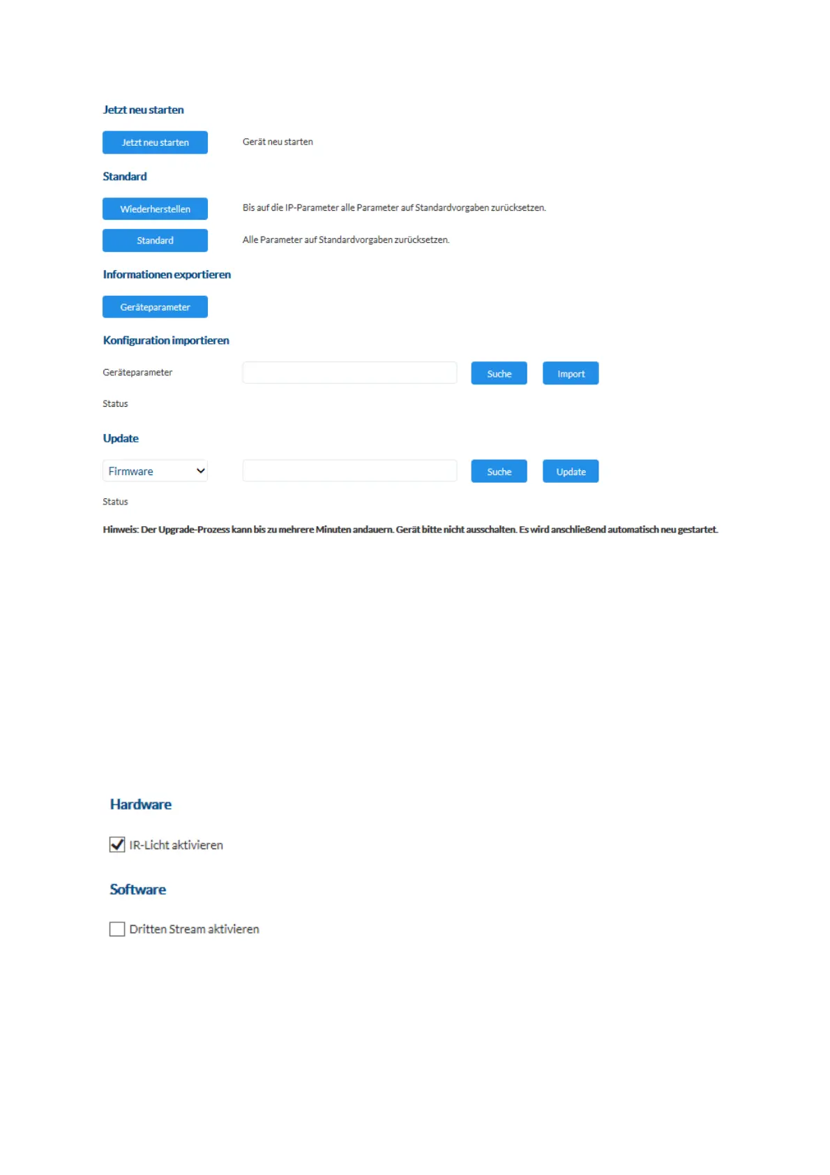 IR Licht aktivieren: Per Standard ist das integrierte IR Licht in den Kameras aktiviert,