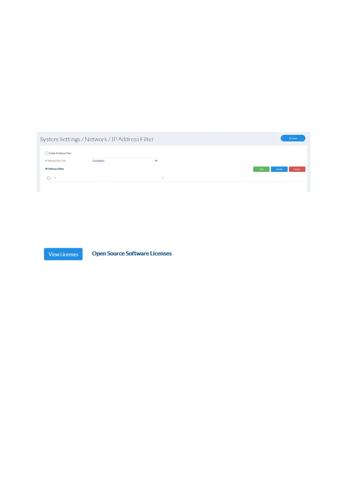 Enable IP address filter: enables the IP address filter function for IPv4 addresses.