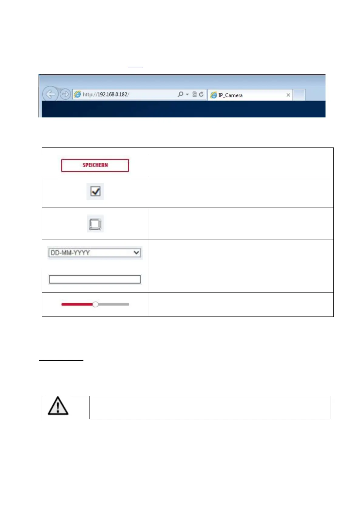 Geben Sie die IP Adresse der Kamera in die Adressleiste des Browsers ein (beim Internet-Explorer muss bei
