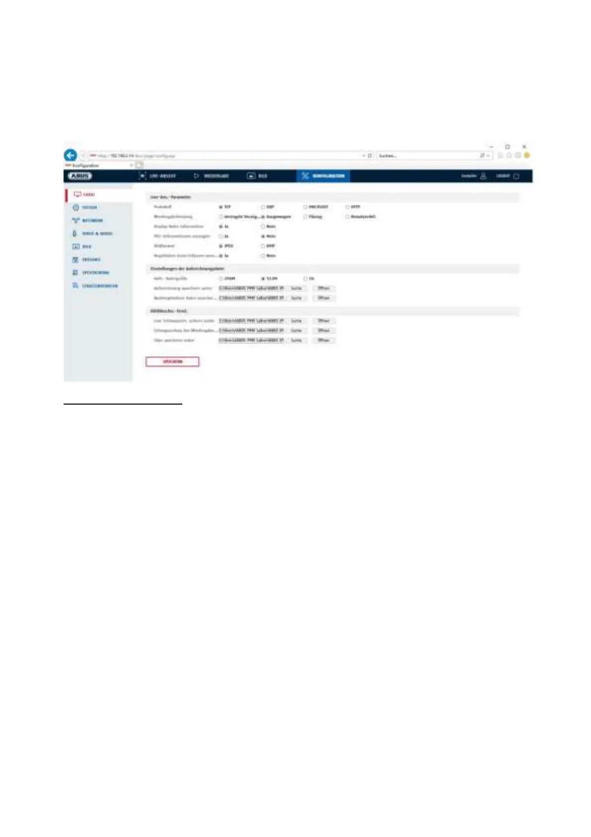 Under menupunktet "Lokal konfiguration" kan du indstille livevisning og filstier for optagelsen og