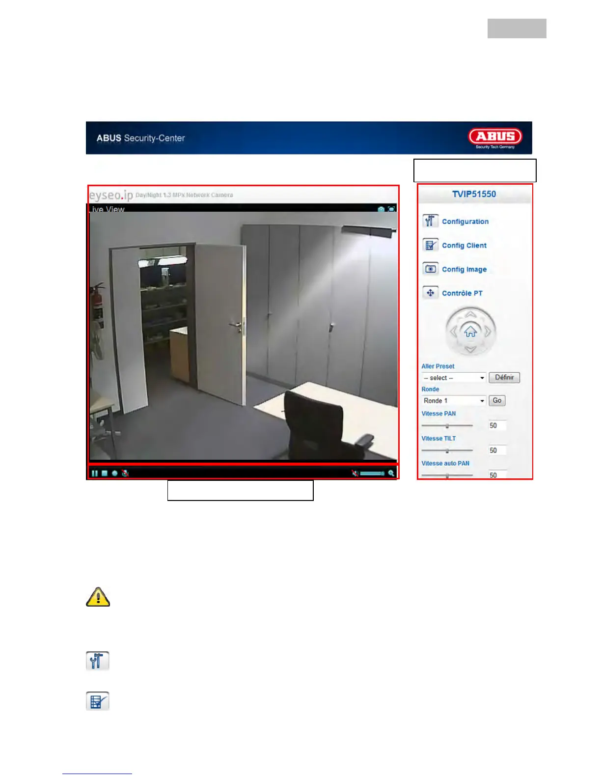 Ouvrir la page de démarrage de la caméra réseau. L'interface est répartie de la manière suivante :