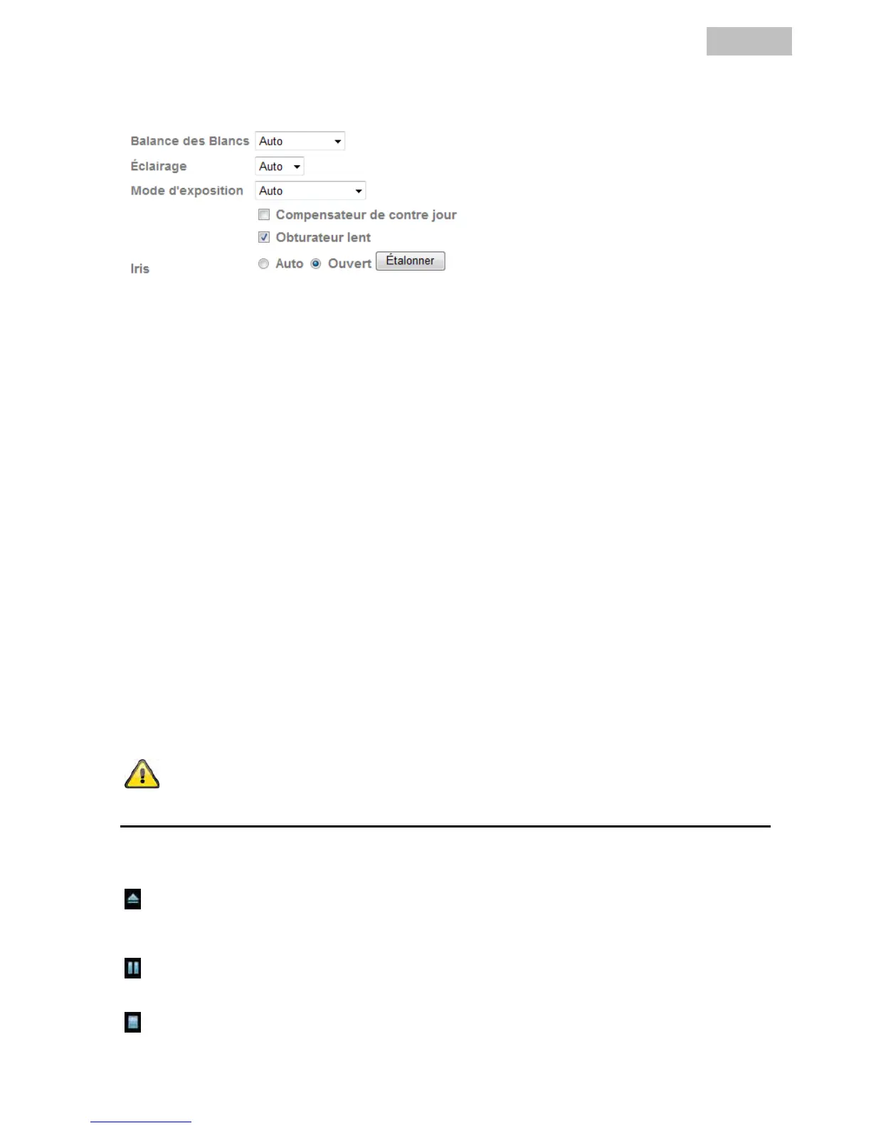 Auto : La caméra étalonne automatiquement l’ouverture du diaphragme après
