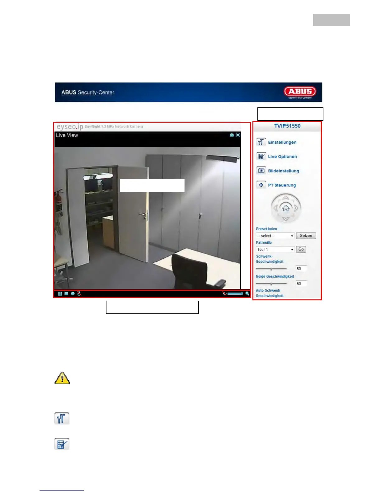 Öffnen Sie die Startseite der Netzwerkkamera. Die Oberfläche ist in folgende Hauptbereiche unterteilt: