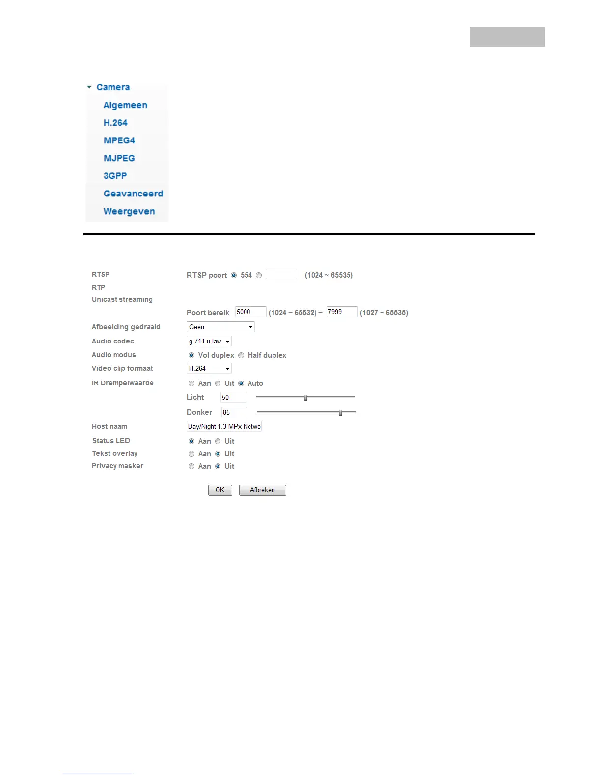 RTSP poort: De standaard poort voor de RTSP-overdracht luidt 554. Alternatief kan deze poort een