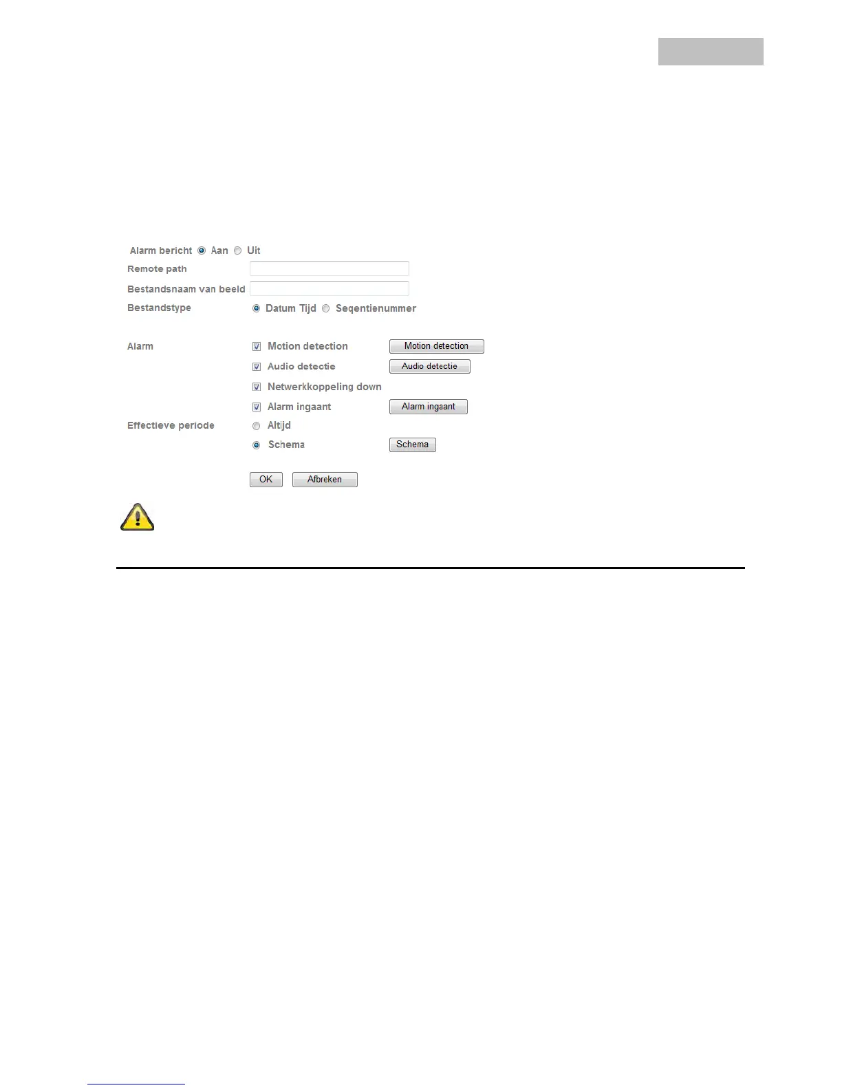 Alarm: In geval van alarm kunnen hier bepaalde reacties voor de FTP-overdracht