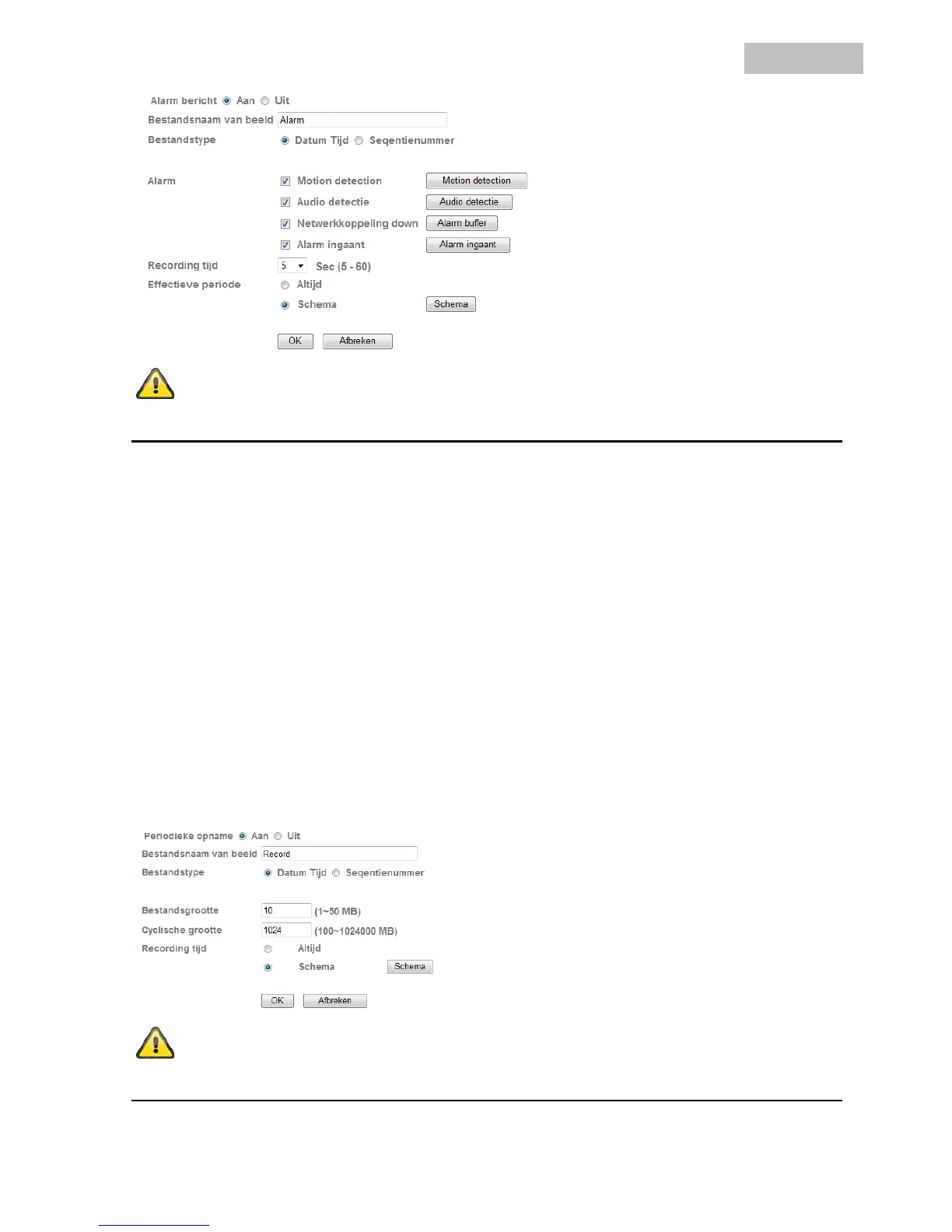 Tijdschema: De alarmmelders voor deze alarmreacties zijn volgens gedefinieerde tijdschema's