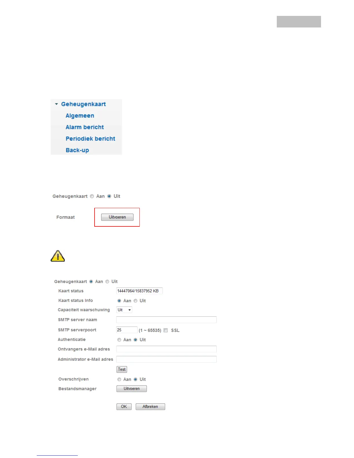 Nadat de SD geheugenkaart is geplaatst kunt u kiezen tussen aan en uit. De optie "Uitvoeren" (formatteren)