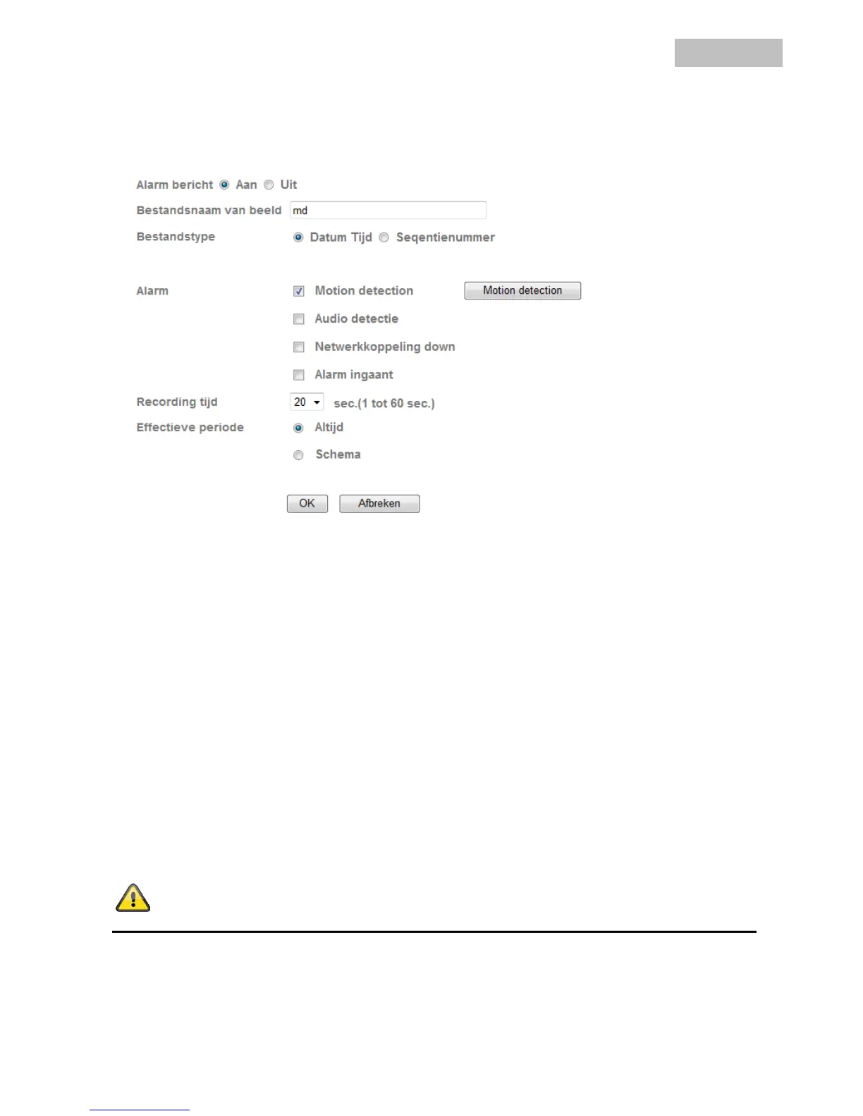 geheugenkaart op te slaan wanneer de opname wordt geactiveerd door een alarm.