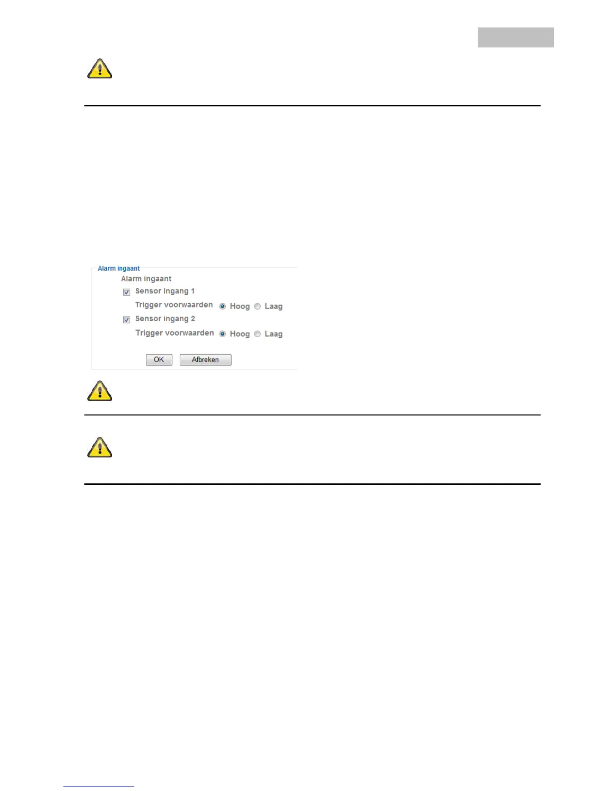 Alarminvoer: Hier worden de eigenschappen van de digitale schakelingang geconfigureerd. Deze
