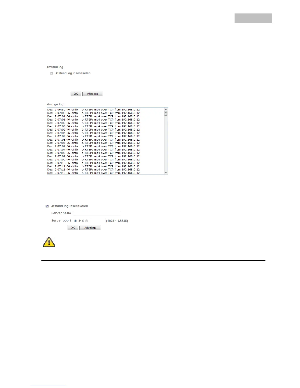 Remote Log activeren: Activeer de Remote-Log functie door het plaatsen van het vinkje