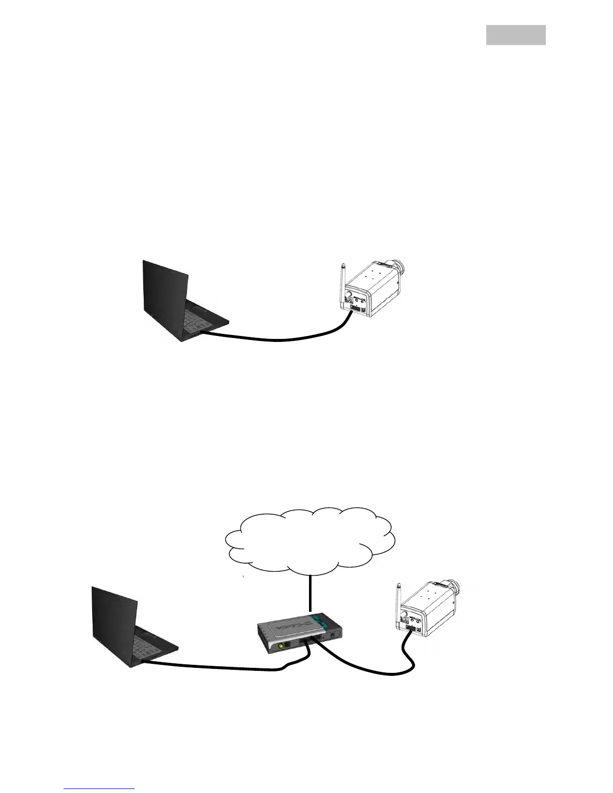 22. Tilslut kablet til pc'ens / laptop'ens Ethernet-interface og netværkskameraet