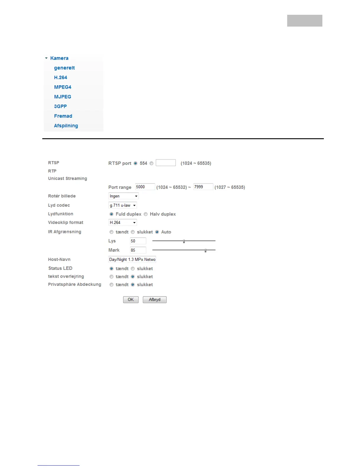 RTSP-port: Standard-porten for RTSP-overførslen er 554. Alternativt kan denne port få en værdi i