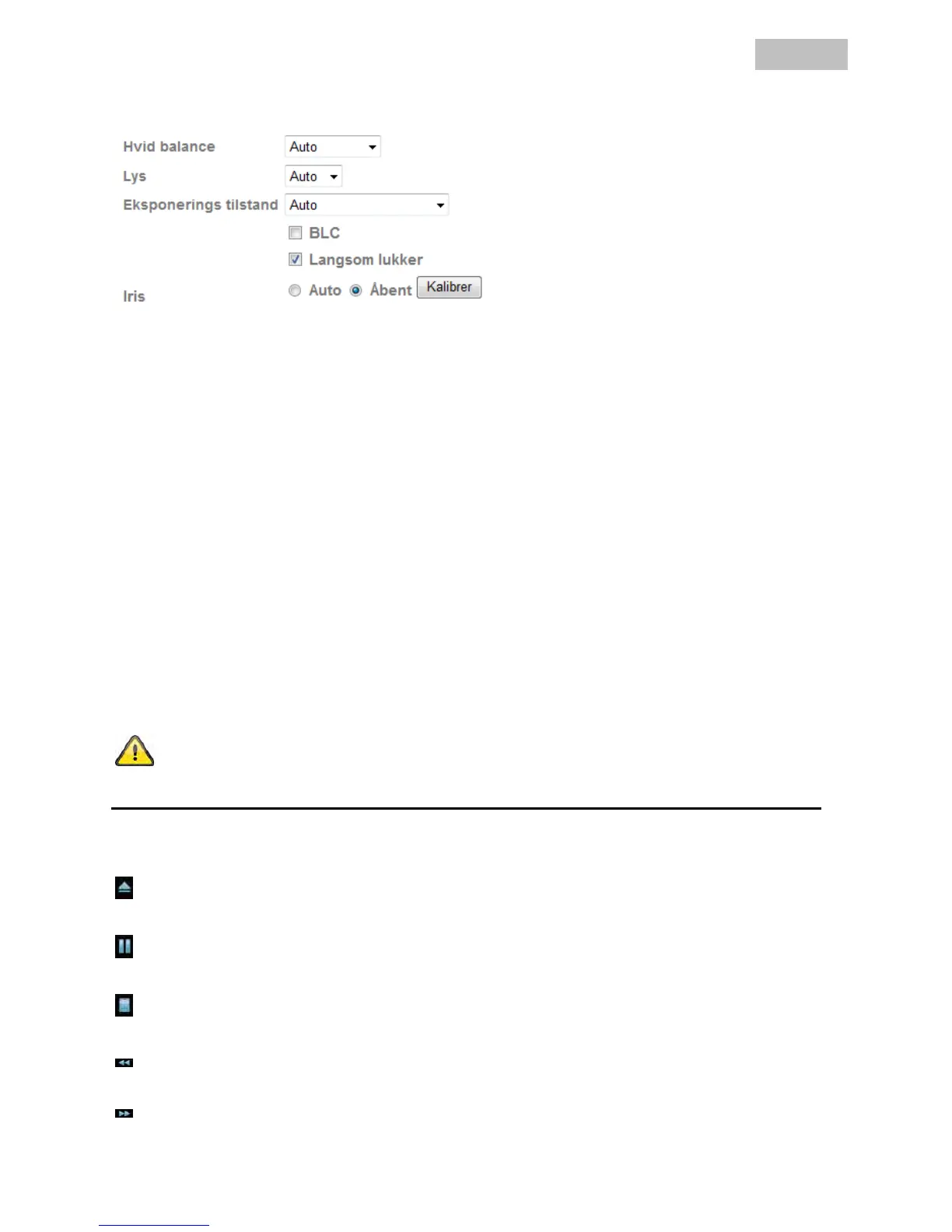 Auto: Tryk OK og kameraets kalibrere automatisk Iris kalibrering varer ca. 3 min. herefter