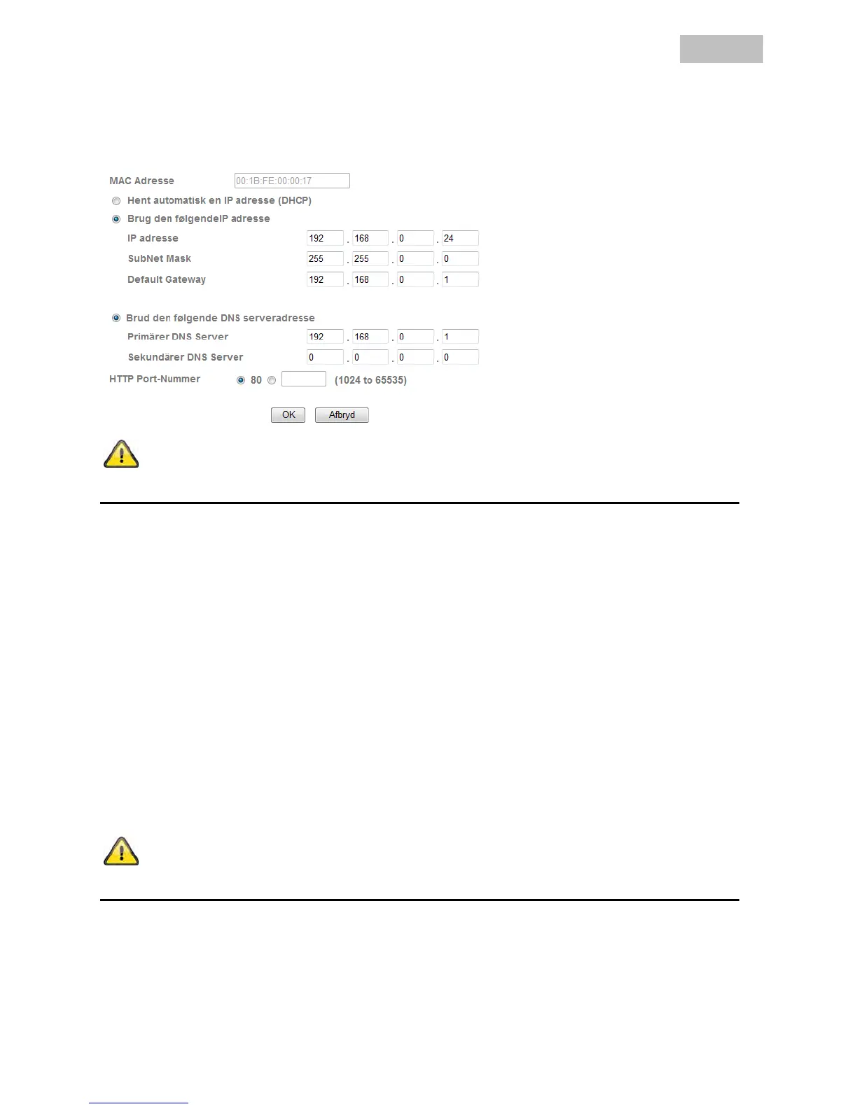 få en værdi i området fra 1024~65535. Hvis der er flere IP-kameraer i