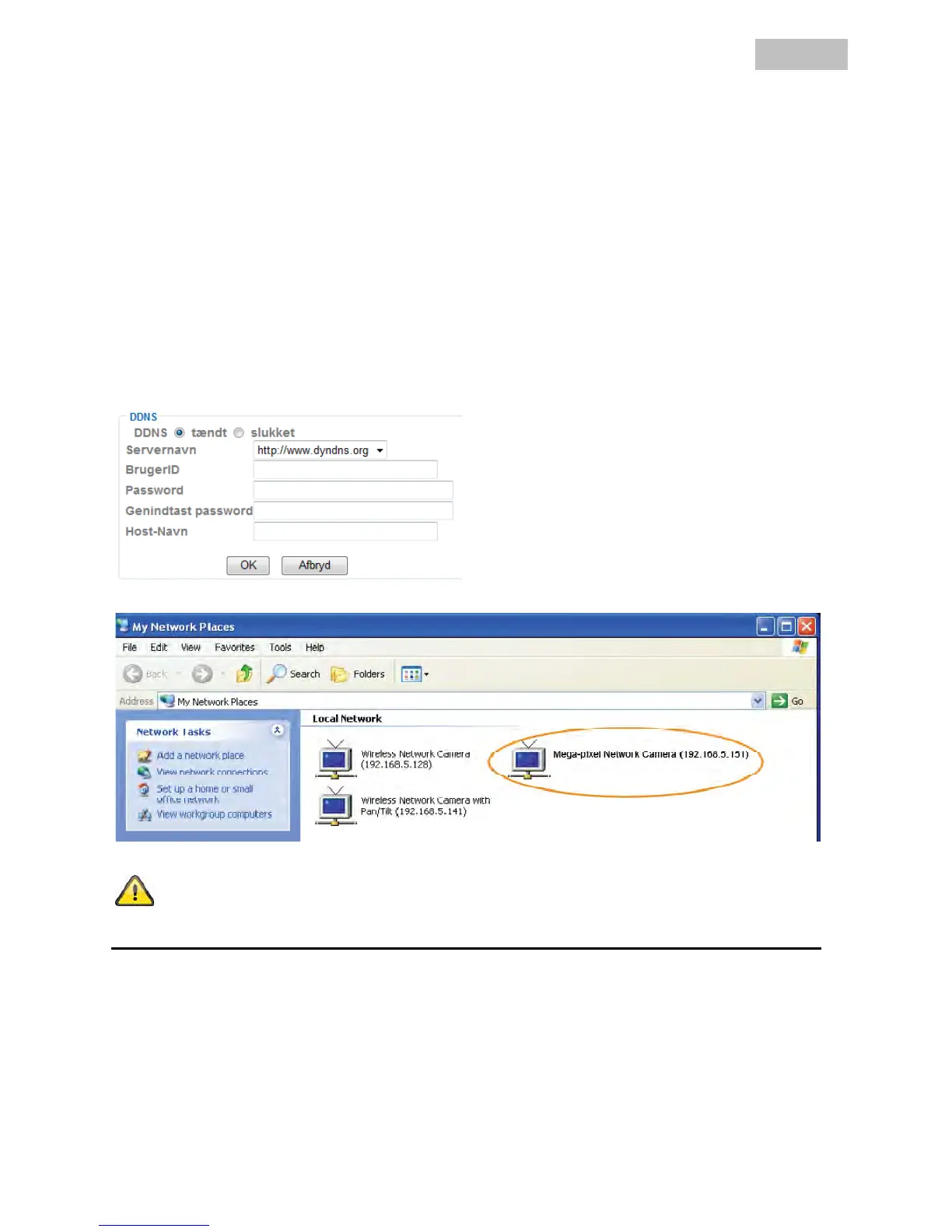 På den måde er netværkskameraet synlig, f.eks. som netværksapparat i Windows-netværksomgivelsen.