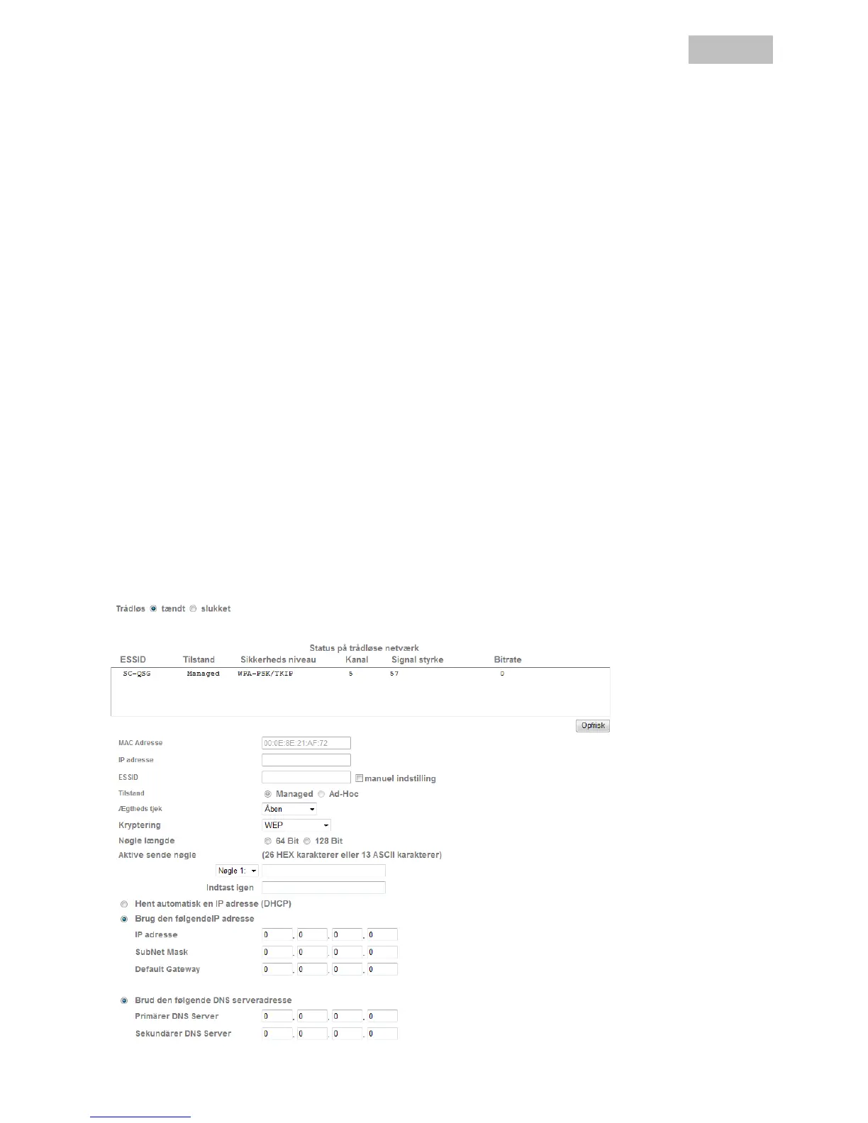 Netværksnøgle: Kun ved WEP. Der kan tildeles op til 4 nøgler.