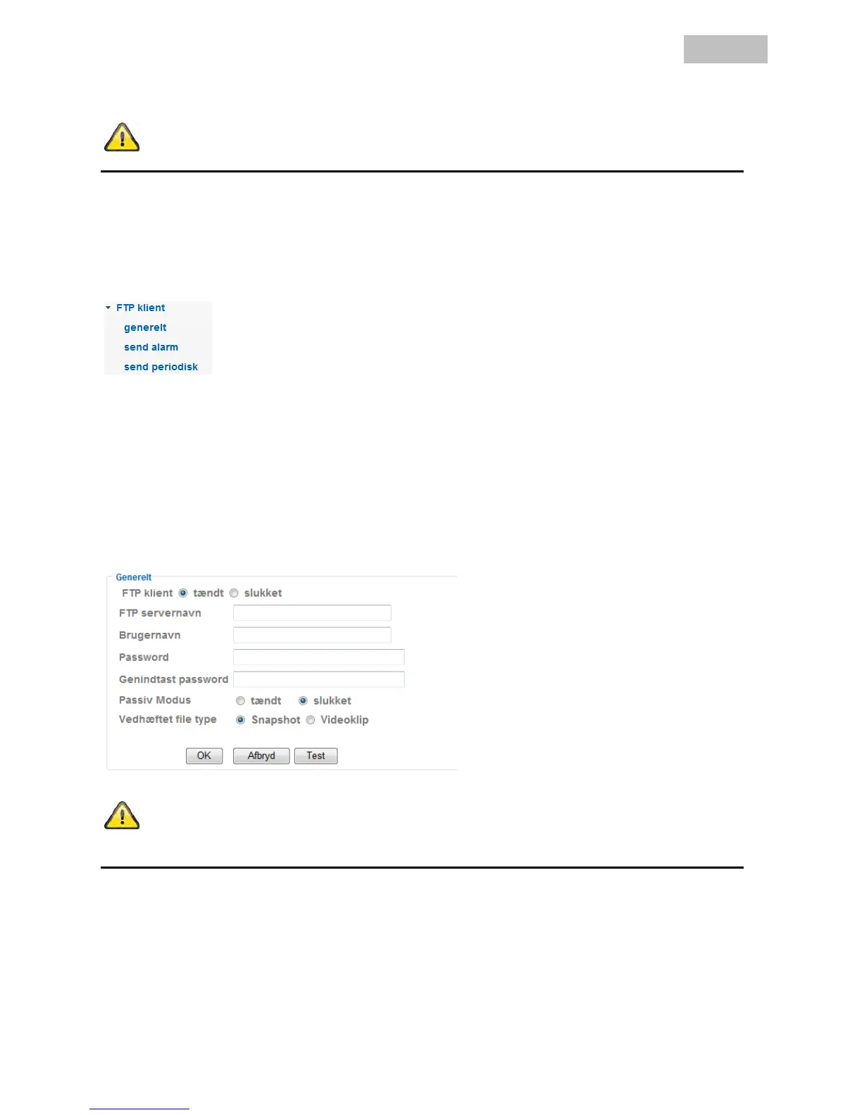 Alarmreaktion: Aktiver eller deaktiver overførslen af billeddata til en FTP-server her.